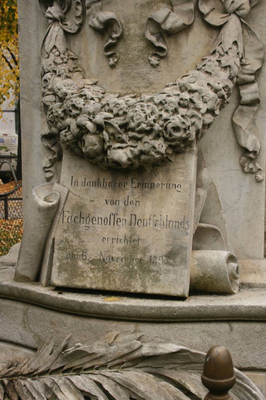 »In dankbarer Erinnerung / von den / Fachgenossen Deutschlands / errichtet / am 6. November 1892«