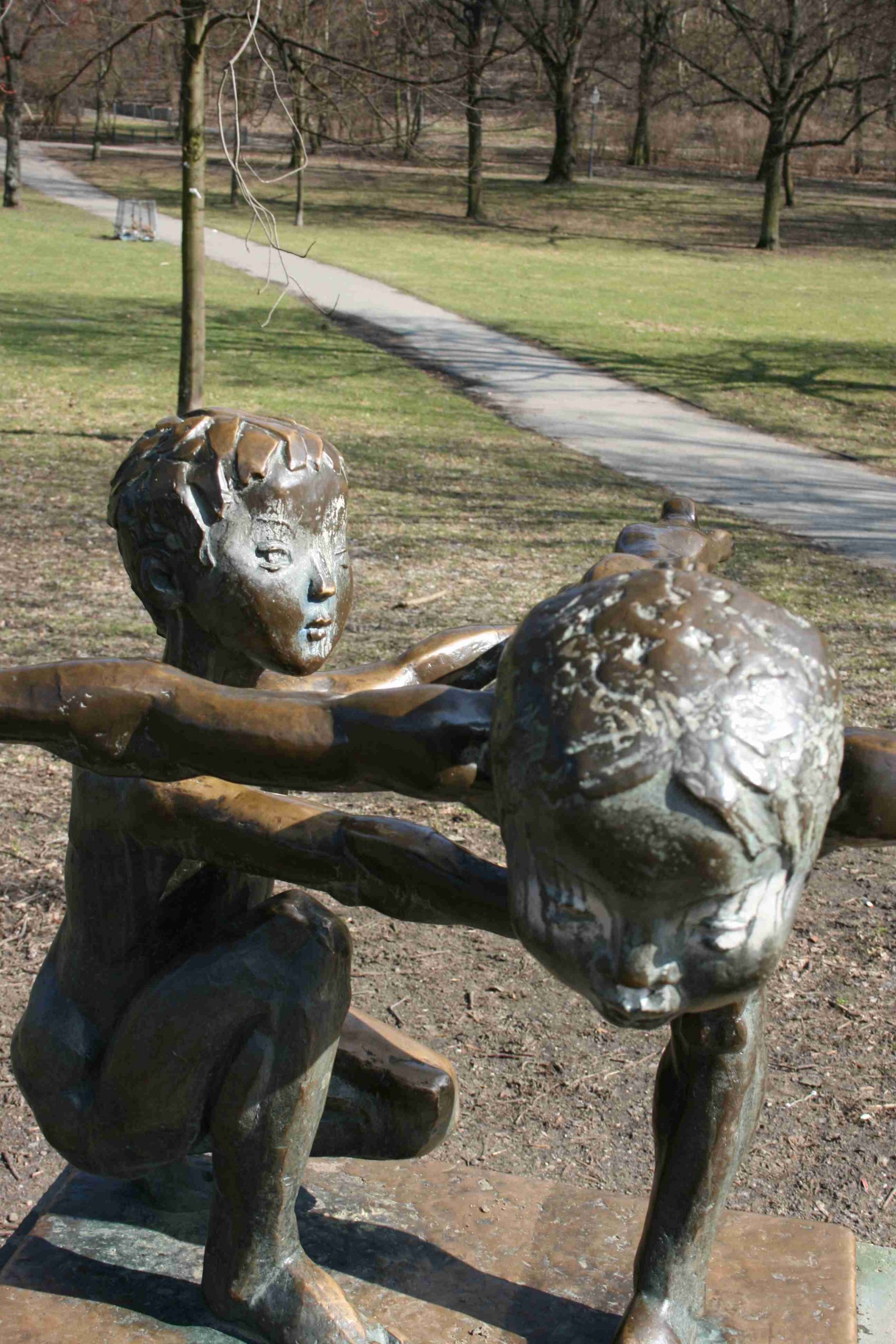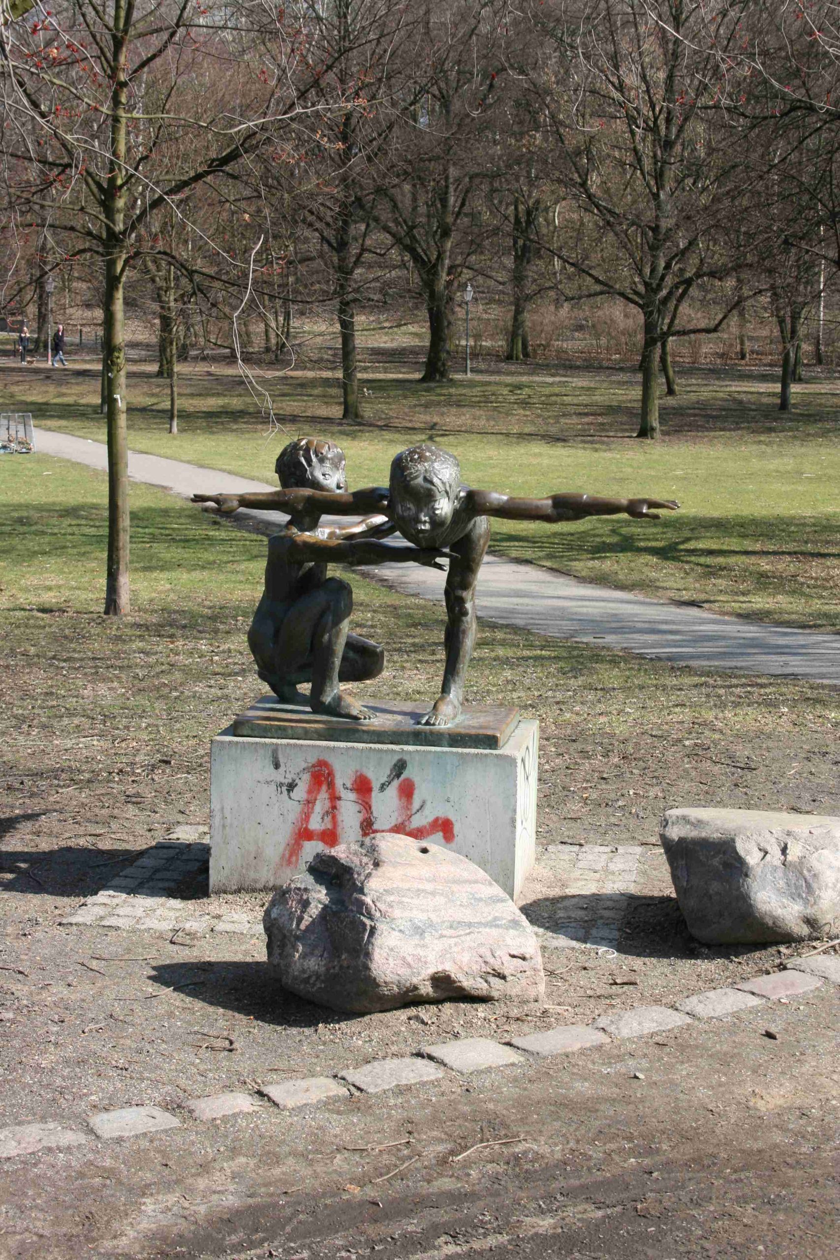 Die Gruppe aus dem Jahr 1977 war seit 1983 an der Danziger Straße (damals Dimitroffstraße) in der Nähe der Sporthalle aufgestellt und ist dann eingelagert worden. Seit einigen Jahren fand sie ihren neuen Aufstellungsort im Volkspark Friedrichshain (Susanne Kähler, 2010).