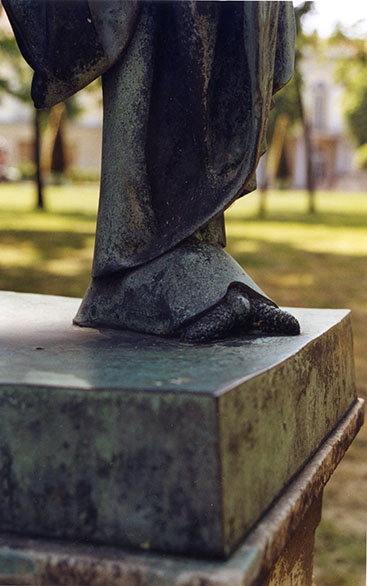 Es handelt sich bei der Figur um eine Bronzenachbildung der Marmorstatue eines Römers von Kleomenes (Original im Louvre als „orateur romain“), um 40 vor Christus. Diese gehört zu den von Griechen unter der römischen Herrschaft angefertigten Kunstwerken. Das Standbild steht unter der gängigen Bezeichnung „Germanicus“ im Schlosspark Charlottenburg. Dieser von dem in Berlin tätigen französischen Gießer François Lequine gegossene und von Louis Coué ziselierte Abguss wurde 1822 auf der Akademieausstellung gezeigt und wohl erst 1824 für 1000 Taler vom König angekauft. Danach kam es zu komplizierten Verhandlungen um die Platzierung und zu zahlreichen Umsetzungen der Figur innerhalb der ersten 15 Jahre nach seiner Entstehung, an denen der König selbst regen Anteil nahm. Es wurde u. a. von Peter Joseph Lenné eine Aufstellung in Sanssouci vorgeschlagen, auch die Luiseninsel wurde in Erwägung gezogen (Details siehe Wimmer 1992, S. 17-18). Zwischenzeitlich stand die Figur in unmittelbarer Nähe zum Schinkelpavillon. Am heutigen Platz steht die Figur nach wechselvoller Geschichte seit 1962. Der Standort zwischen etwa 1839 und dem Zweiten Weltkrieg war aber bereits mit der Front zur Spree im Spreeboskett. Eine kleinere Version des „Germanicus“ wurde 1839 auf der Insel in Charlottenhof auf einem sieben Meter hohen Pfeiler aufgestellt. Der „Germanicus“ ist als eine der unter Friedrich Wilhelm III. erworbenen Antikenkopien noch als Guss des beginnenden 19. Jahrhunderts erhalten und als fester Bestandteil der Parkausstattung zu betrachten (Susanne Kähler).