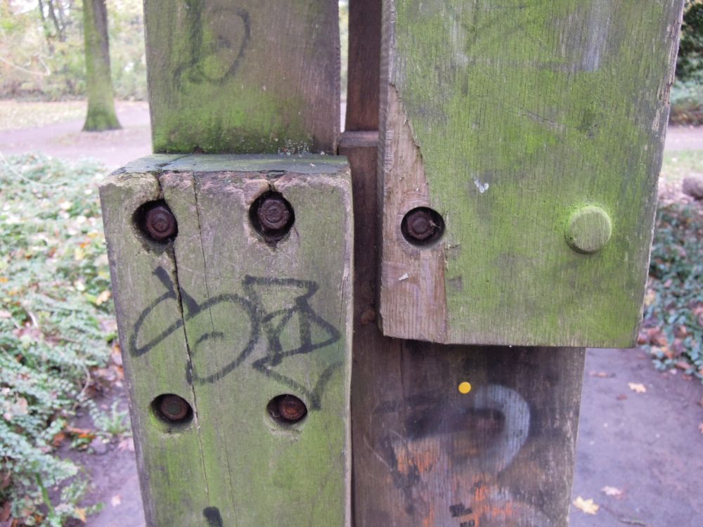 unvollständig, Holzpropfen der Verschraubungen fehlen teilweise