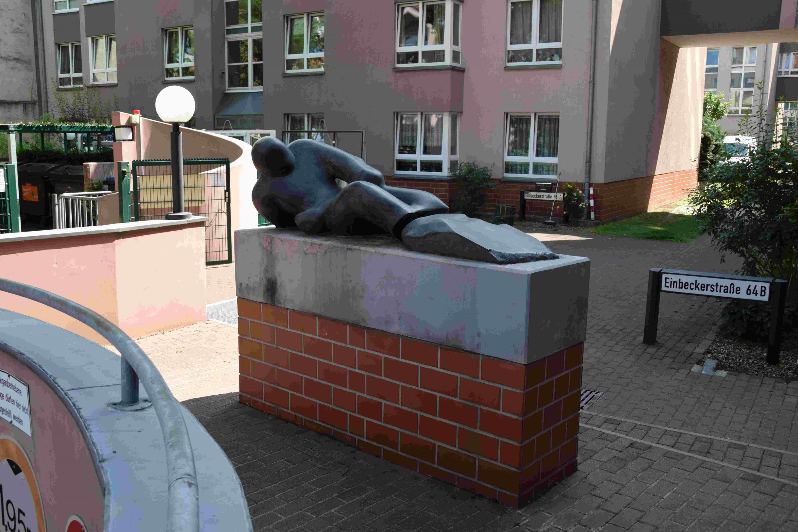 Die in München ansässige Korff GmbH war Auftraggeber der Mitte der 1990er Jahre an der Einbecker Straße 64/66 errichteten Wohnanlage. Helmut Korff, Geschäftsführer dieses Unternehmens, ließ 1995 in der Gießerei in Pietrasanta in Italien eine Bronzeversion einer dunklen Marmorplastik herstellen, die er vom Künstler Andreas Klein erworben hat und die Klein zu Beginn der 1990er Jahre geschaffen hatte. Andreas Klein ist der Sohn von Elgin Korff, Ehefrau von Helmut Korff, und Bruder von Christopher Klein. Die Bronzeplastik wurde 1995/1996 vor der Wohnsiedlung, hinter der Einfahrt zur Tiefgarage, aufgestellt. Die Wohnanlage ist um 2012 samt zugehörigen Kunstwerken der Brüder Klein von der Korff GmbH veräußert worden (Max Braun).