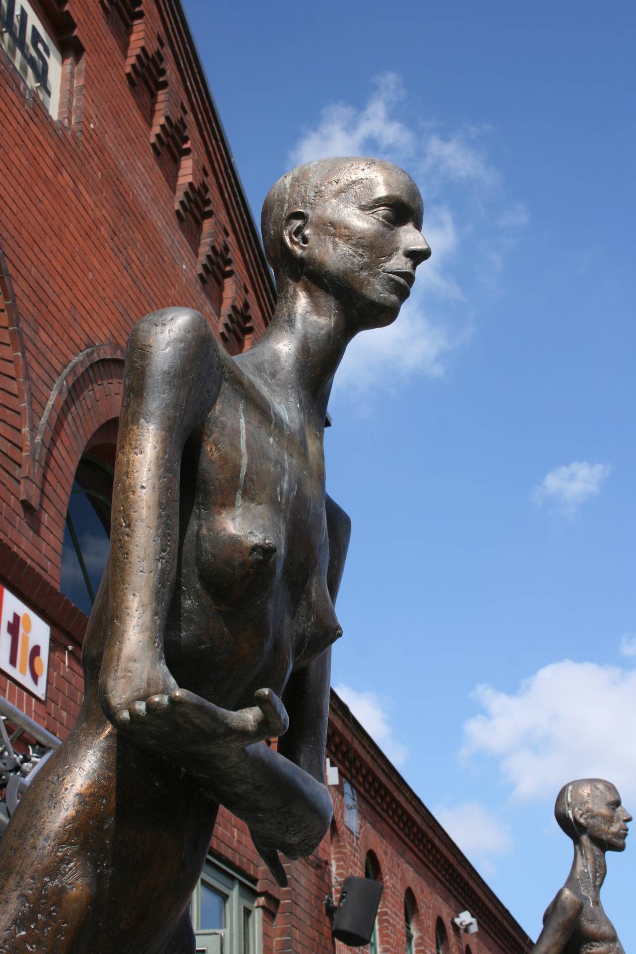 Künstlerisch schließen sich die Figuren an große Vorbilder der klassischen Moderne des 20. Jahrhunderts an ohne das künstlerische Niveau zu erreichen. An sich keine schlechten Arbeiten führt jedoch der ungünstige Aufstellungsort zu einer gewissen Trivialisierung. Stünden die Plastiken in einem Park, so gewönnen sie ganz erheblich im Kontakt mit gestalteter Natur. So zu Torwächtern degradiert, haben sie aufgrund ihrer starren Haltung und der expressiven Handhaltung den Effekt von Horror-Gestalten (Jörg Kuhn, Susanne Kähler).