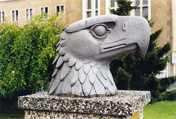 Monumentale Adlerfigur von 1940, heutige Aufstellung des Adlerkopfes 1985