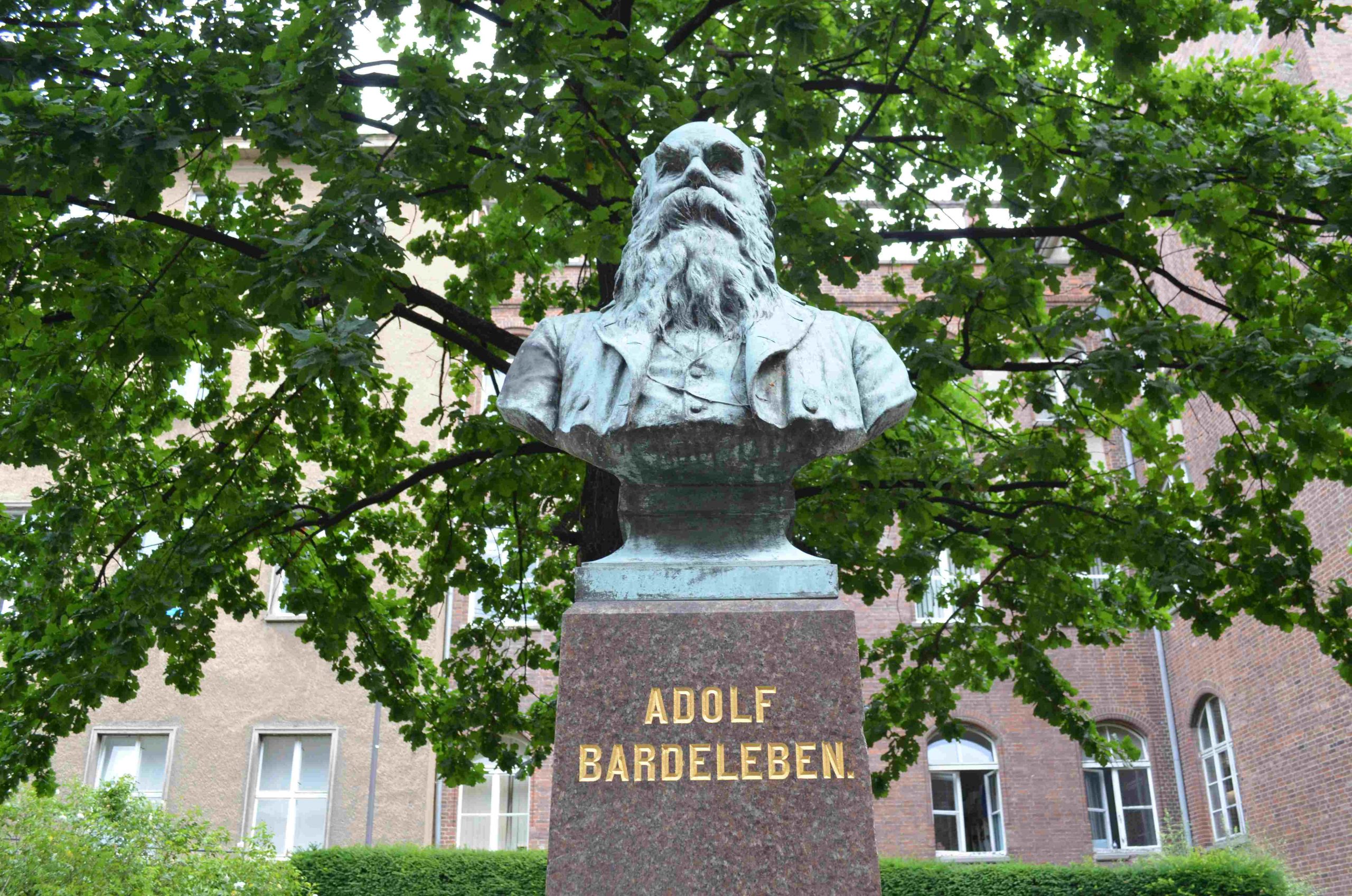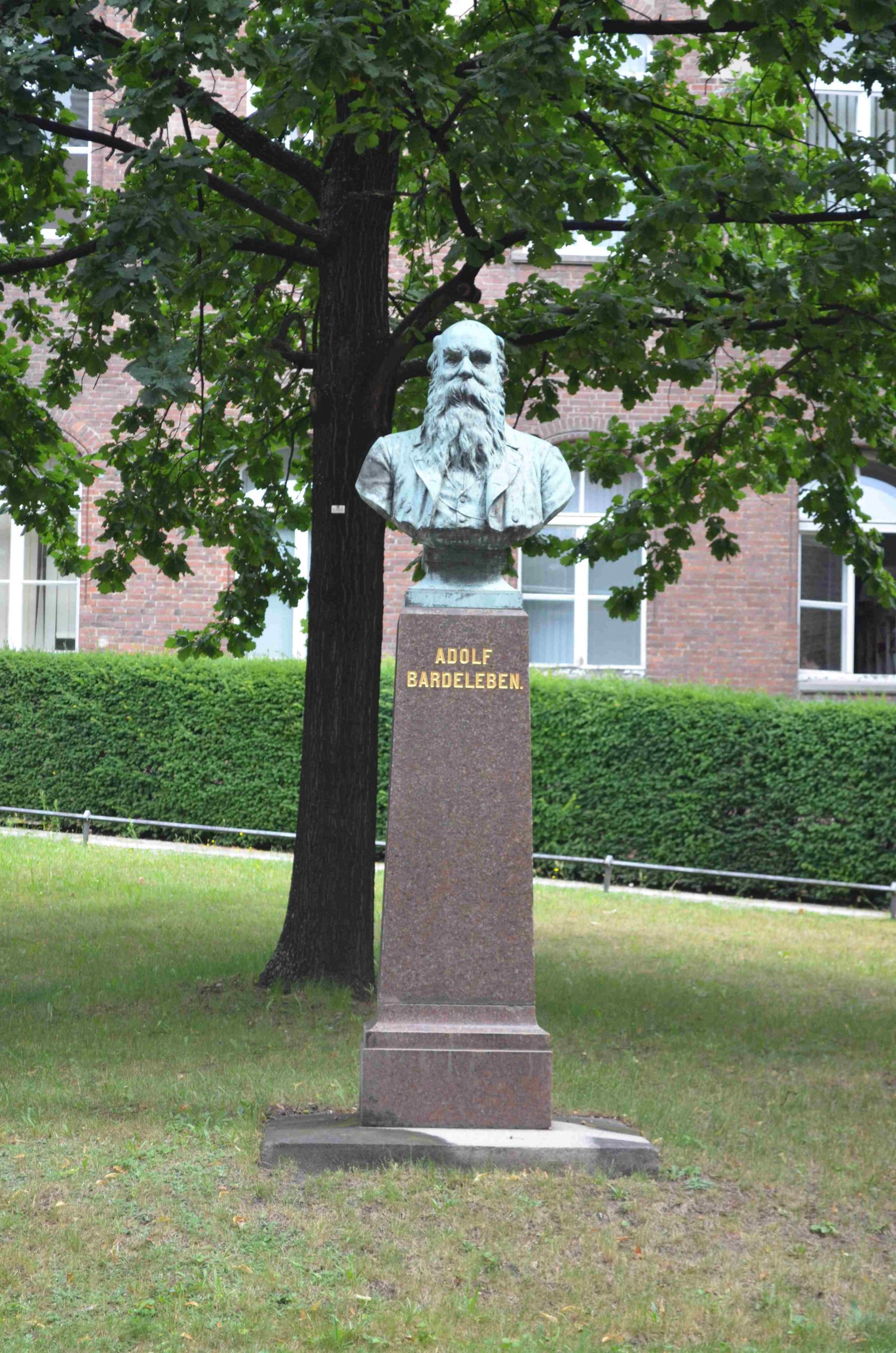 Die Büste des Chirurgen Adolf Heinrich von Bardeleben (1819-1895), Amtsvorgänger von Franz König, wurde von Martin Wolff geschaffen und am 15. Oktober 1889 im Garten der Charité eingeweiht. Vermutlich erfolgte 1904 im Auftrag des Preußischen Kultusministeriums eine Neuaufstellung vor der Chirurgischen Klink der Charité. Zeitweilig deponiert (wird etwa von Stefanie Endlich in ihrem Buch über die Skulpturen und Denkmäler in Berlin von 1990 nicht erwähnt). 1994 Restaurierung bei Haber (Haber & Brandner) und Wiederaufstellung (Jörg Kuhn).