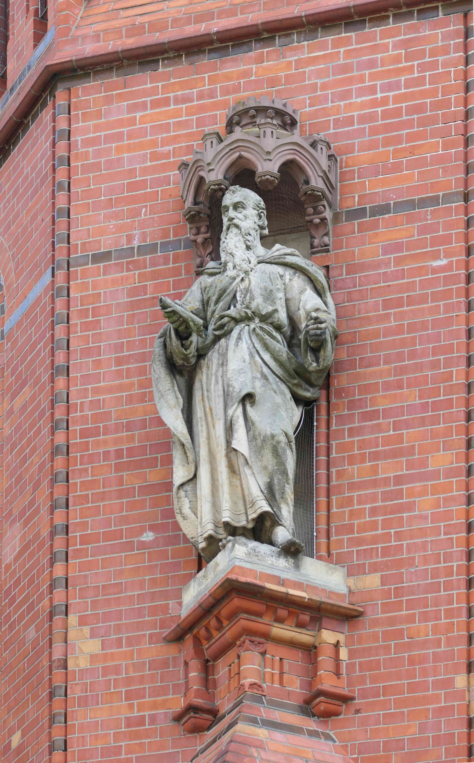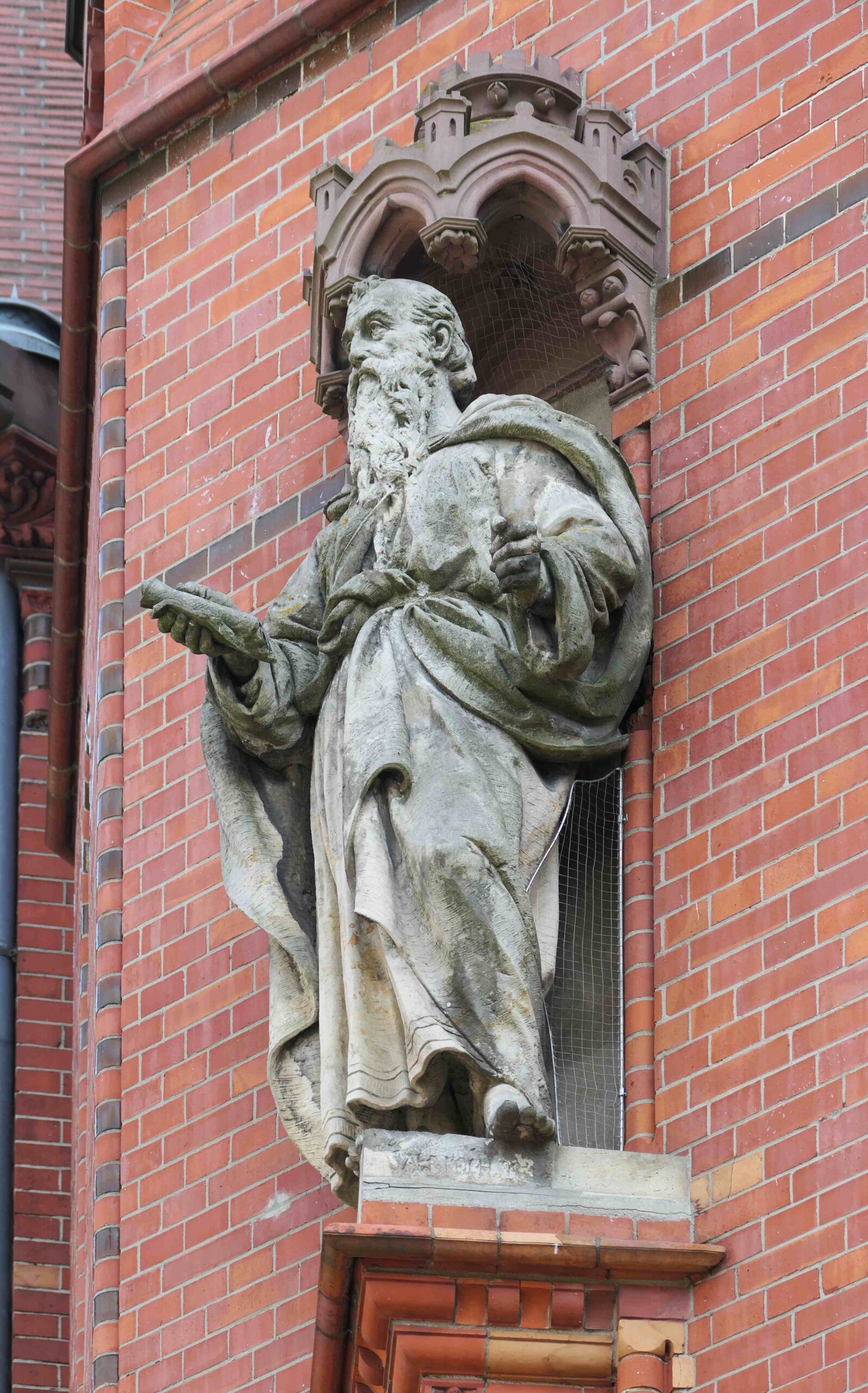 Am westlichen Turm steht der Apostel Paulus mit einer Schriftrolle in der rechten Hand. Auch bei diesem Apostel gab es eine Bildhauersignatur an der rechten Sockelseite, die jedoch stark verwittert ist. Vermutlich stand dort „ALB KOCH 93“ (Nicola Vösgen).