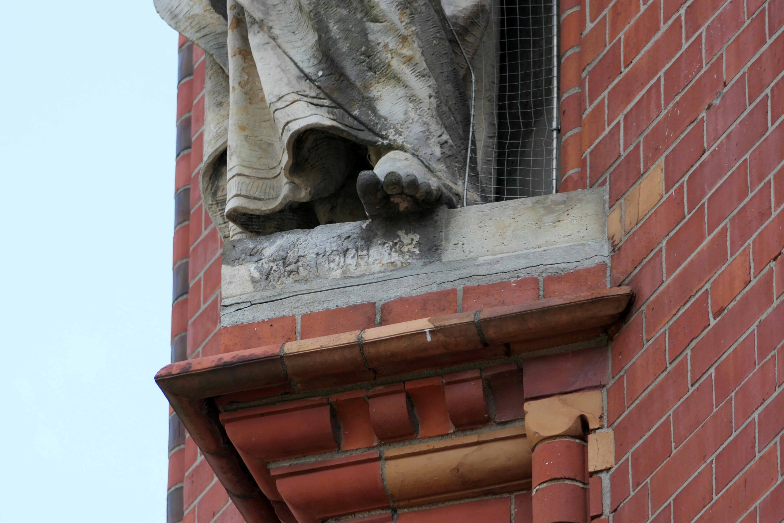 Die beiden aus Sandstein gefertigten Apostelfiguren stammen von dem Friedenauer Bildhauer Albert Koch. Laut der Bildhauersignatur waren sie 1893 fertiggestellt (Nicola Vösgen).