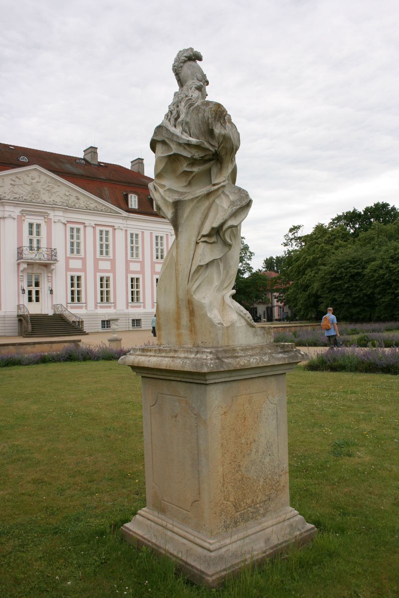 Im Rahmen der Wiederherstellung des Nordparterres am Schloss Friedrichsfelde wurden gegen Ende der 1980er Jahre Nachschöpfungen barocker Figuren aufgestellt. Sieben der barocken Vorbilder werden - mehr oder weniger zutreffend - dem Bildhauer Carl Philipp Glume (1724-1776), Mitglied einer im Berliner Raum bekannten Bildhauerfamilie - zugeschrieben. Glume hatte diese Skulpturen für den Schlosspark in Schwedt an der Oder gearbeitet (vgl. Torsten Freyhof: "Verwechselt und vergessen (Skulpturen aus der Werkstatt Glume)", in: Schwedter Jahreshefte, Heft 3, 2002, S. 19-27).