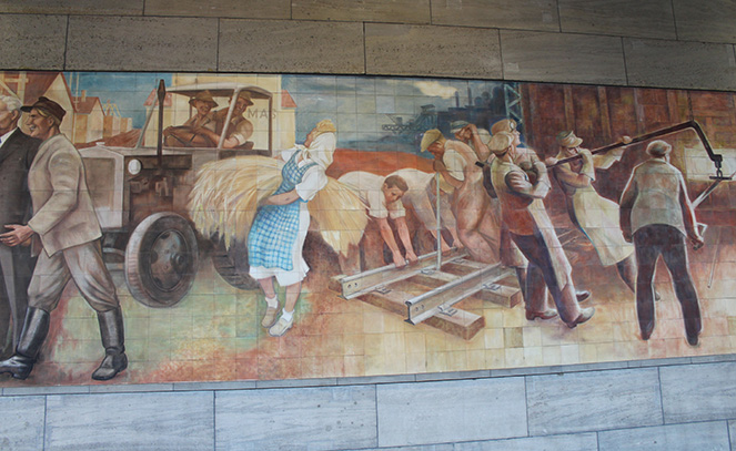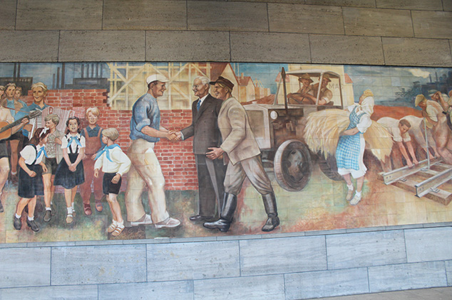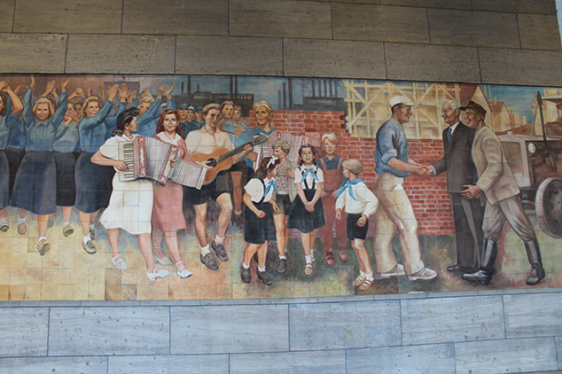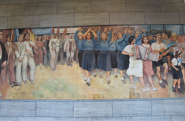 Das Wandbild, gemalt auf Fließen aus Meißner Porzellan, ist eines der wichtigsten Auftragswerke der 50er Jahre. Es schmückt und dominiert die Vorhalle des Detlev-Rohwedder-Hauses in der Wilhelmstraße in Berlin-Mitte mit Szenen aus Landwirtschaft, Schwerindustrie, Pionieren und FDJ-Mitgliedern, Musizierenden und Demonstrierenden sowie Vertretern der Intellegenz und Arbeiterklasse (vgl. Maleschka, 2019, S.67 ff.).