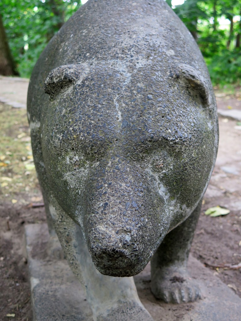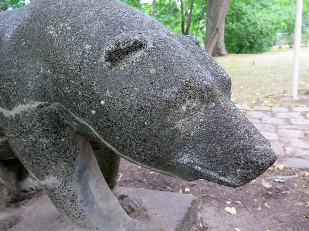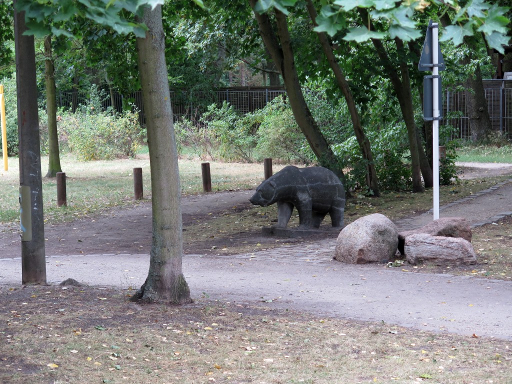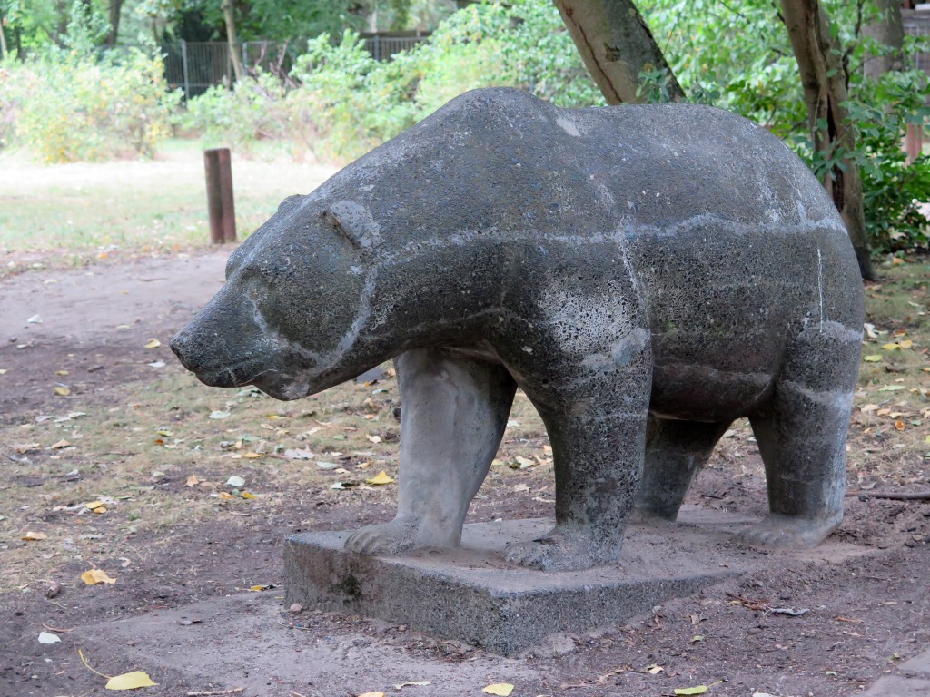 An der südwestlichen Ecke des Kinderspielplatzes in der Roßmäßlerstraße befindet sich die Plastik eines unterlebensgroßen, naturnah formulierten Bären aus dunklem Kunststein. Er steht auf einer nach vorne ansteigenden Plinthe und scheint zielstrebig vorwärts zu laufen, der leicht zur rechten Seite gewandte Kopf ist etwas gesenkt.