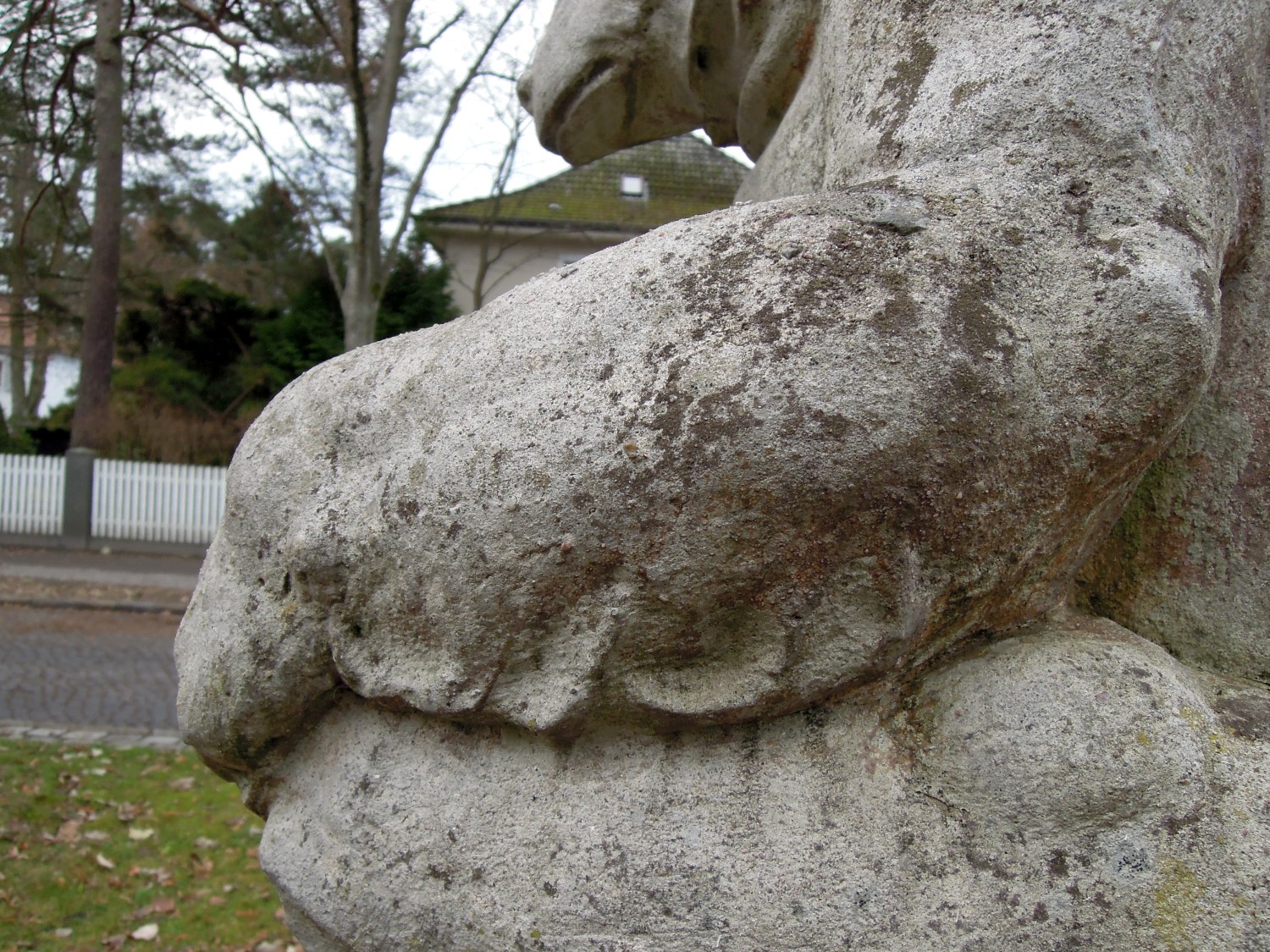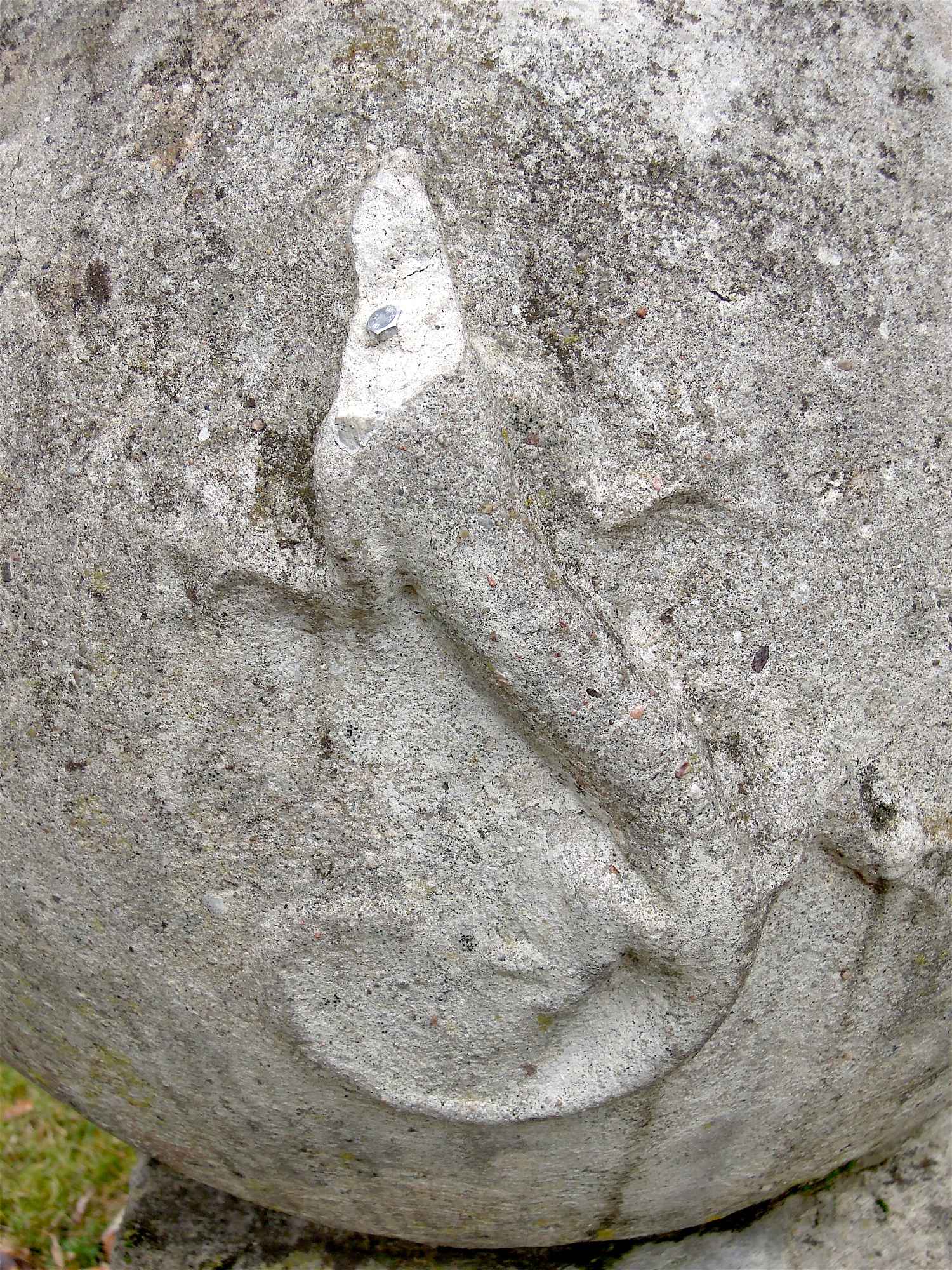 hockt eine Eidechse (Salamander), die auf den Bären zukriecht. Ihr Kopf fehlt; die Fehlstelle zeigt eine Sechskantkopfschraube wohl von einer früheren Reparatur (Jürgen Tomisch, Barbara Anna Lutz).
