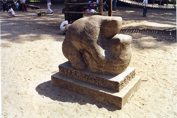 Im Sand des Kinderspielplatzes im nordöstlichen Bereich der Parkanlage (südlich unterhalb des Trümmerberges) steht auf einem rechteckigen flachen Muschelkalksockel mit rechteckiger Plinthe die steinerne Gruppe zweier sich balgender Bären. Es handelt sich um einen größeren und einen kleineren Bären, vielleicht sind Mutter und Kind gemeint. Die Skulpturengruppen hat die Funktion einer Kletterfigur für Kinder (Susanne Kähler).