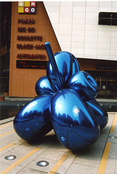 Auf einer zu einem Wasserbecken hin getreppten Fläche steht auf drei zierlichen stählernen Standzapfen die pyramidal aufgebaute Plastik des renommierten amerikanischen Künstlers Jeff Koons. Die Plastik ist von fast allen Wegen, die auf den Platz zuführen, zu sehen. „Die Skulptur besteht aus sieben Elementen, die in ihrer ‚Verknotung’ sogleich ihr ‚Modell’ erkennen lassen: eine raffiniert verdrehte Luftballonschlange, die Assoziationen an eine abstrahierte Blüte wecken soll. Die ‚Blütenblätter’ formen sich aus sechs unterschiedlich geformten Wülsten, die in der Mitte jeweils eine schlitz- oder kerbenartige Vertiefung besitzen. Die drei größten Elemente bilden in einer pyramidalen Anordnung die ‚Standbeine’ der Skulptur. Seitlich ragt in Form eines schmalen, stabförmigen Zylinders der ‚Blütenstiel’ in die Luft“ (Kunst in der Stadt, 2003, S. 24). Die Stahlplastik ist monochrom mit gelüstertem Blau lackiert. (Susanne Kähler/Jörg Kuhn)