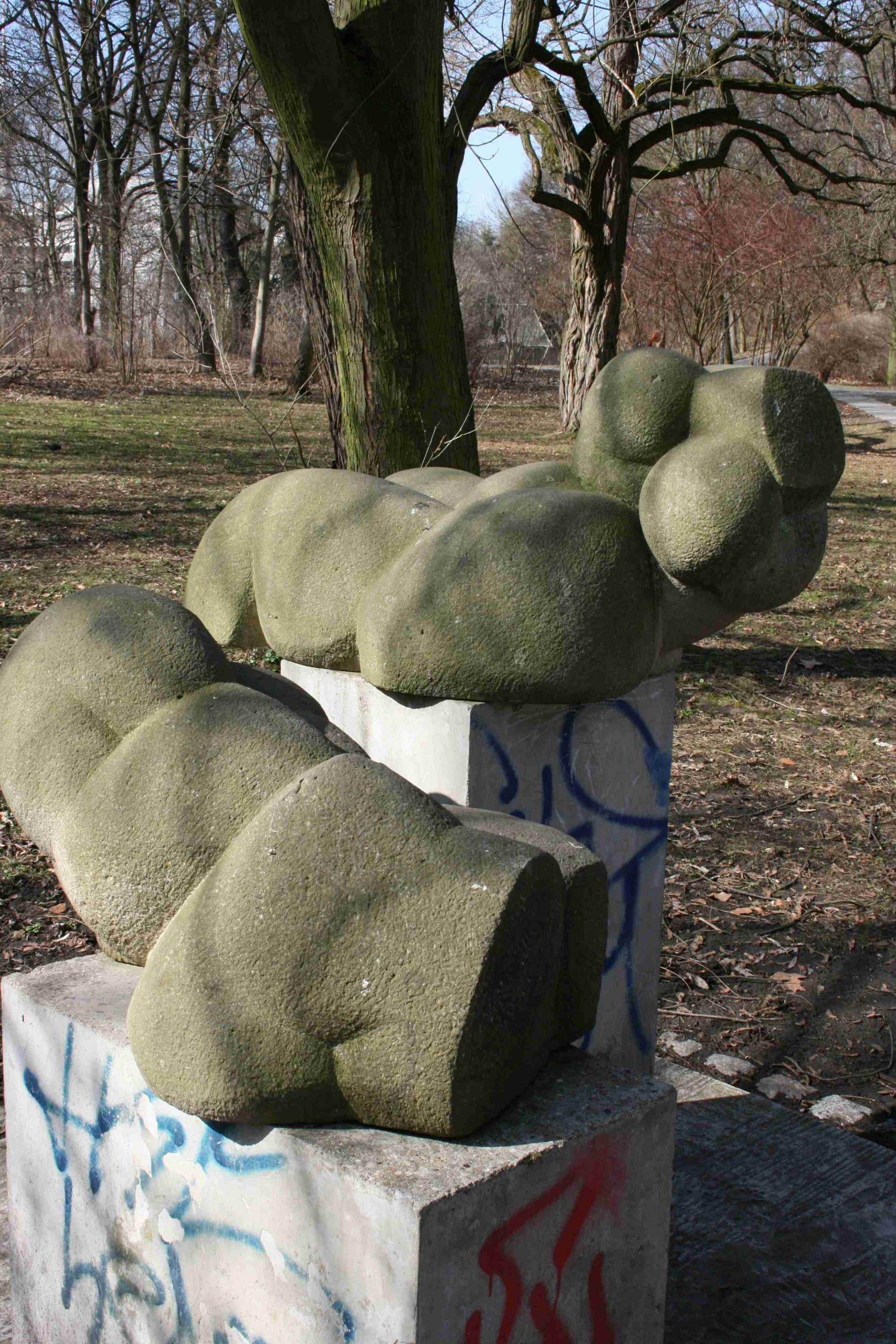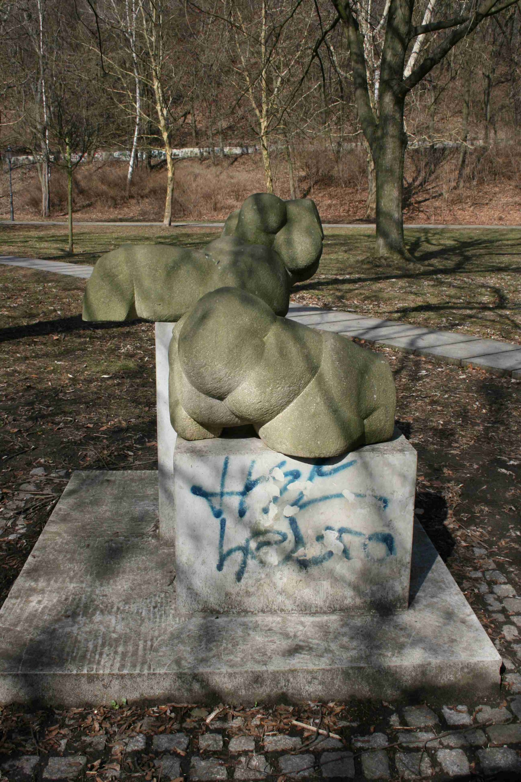 Die zweiteilige abstrakte Skulptur aus Sandstein wurde auf zwei rechteckigen Betonsockeln platziert, die wiederum auf einem rechteckigen Betonfundament aufgestellt sind. Trotz der Abstraktion sind die Torsi zweier Menschen – männlich und weiblich – zu erkennen, die sich durch Drehungen in der Hüfte einander zuwenden. Der Künstler hat allerdings anatomische Elemente der beiden Oberkörper frei kombiniert (Susanne Kähler, Jörg Kuhn).