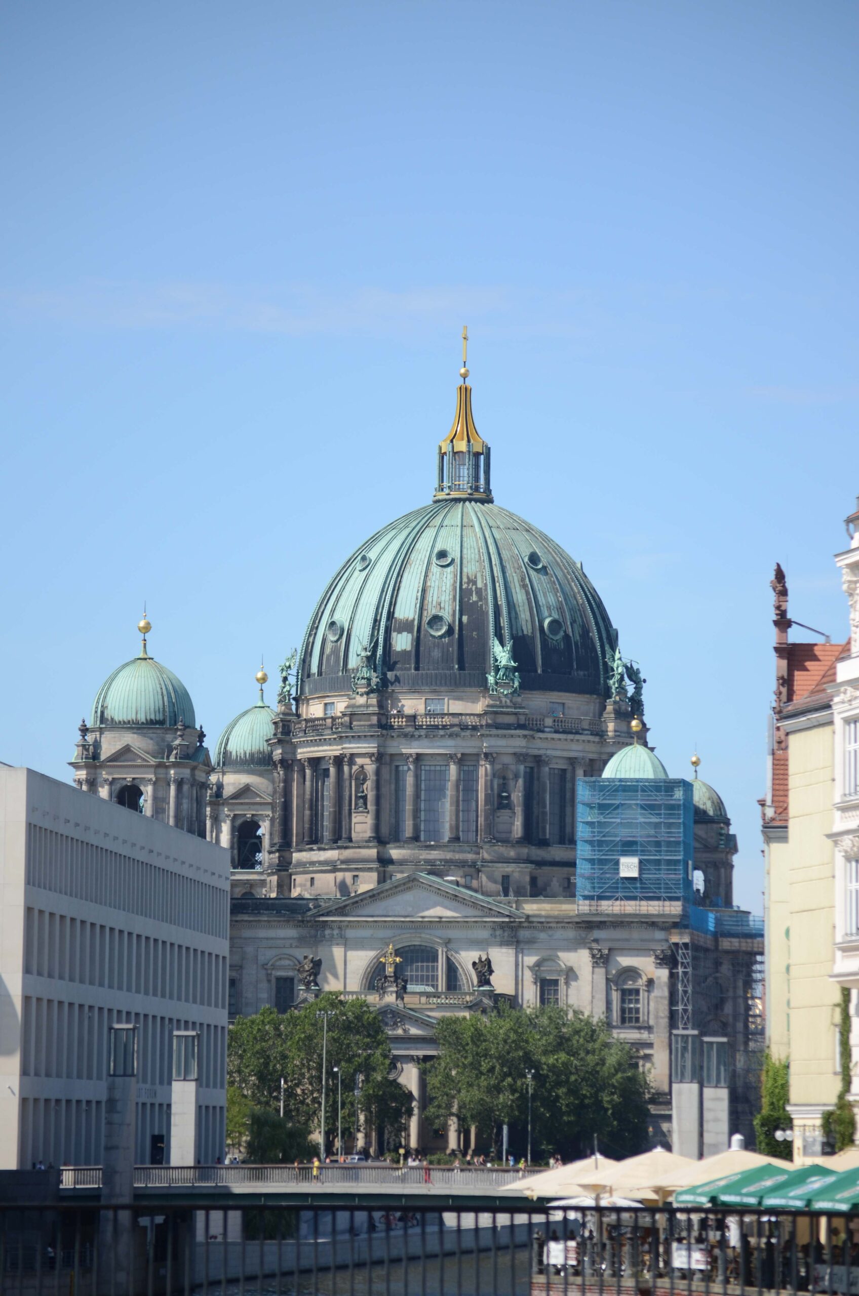 An der östlichen Seite des Lustgartens erhebt sich die Hauptfassade des Berliner Doms mit der zum Lustgarten geöffneten großen Vorhalle. In dem Zentralbau befindet sich unter der großen Mittelkuppel die Predigerkirche, an den Ecken umgeben vier Türme die Hauptkuppel. Stilistisch orientiert sich die Fassadengestaltung des Doms an den Formen der Hochrenaissance und des Barock (Nicola Vösgen).