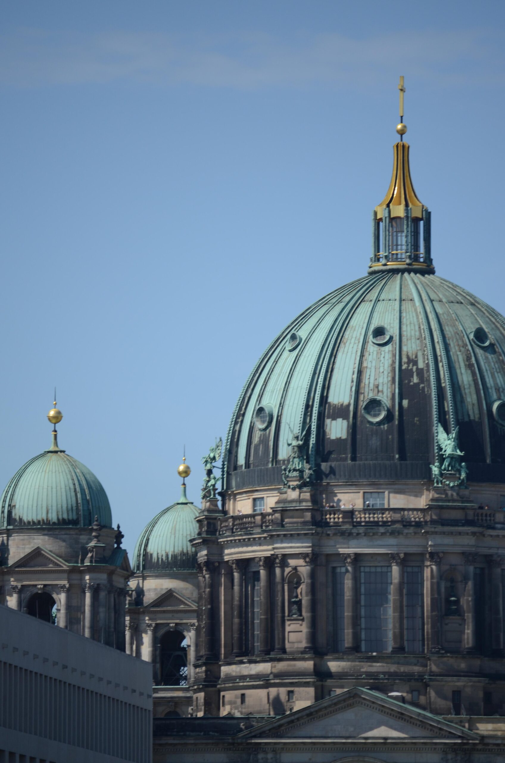 Der Berliner Dom wurde zwischen 1894 und 1905 nach Plänen des Dombaumeister Julius Raschdorff (1823 – 1914) erbaut, für die Bearbeitung der baukünstlerischen Entwürfe war sein Sohn Prof. Otto Raschdorff (1854 - 1915) verantwortlich. Bei allen Planungsschritten am Bau und an der Ausstattung hatte auch Kaiser Wilhelm II. ein maßgebliches Mitspracherecht. Der Dom steht an der Stelle der 1747 bis 1750 nördlich des Berliner Stadtschlosses erbauten ersten Domkirche, die in den Jahren 1816/1817 nach Plänen von Karl Friedrich Schinkel umgestaltet worden war. Nach der Reichsgründung kam jedoch der Wunsch nach einem repräsentativeren Gotteshaus auf, das den Schinkel-Bau ersetzen sollte. 1893 wurde mit dem Abriss des alten Doms begonnen und am 17. Juni 1894 konnte der Grundstein für den neuen Dom gelegt werden. Seit 1896 sind in den Architektur- und Bildhauerateliers Modelle für die bauplastische Ausstattung entworfen worden, um 1897 konnten die ersten dieser Arbeiten an den Domfassaden aufgestellt werden. Nach 11 Jahren Bauzeit erfolgte die Einweihung des neuen Doms am 27. Februar 1905. Im Zweiten Weltkrieg erlitt der Dom erhebliche Beschädigungen. Erst 1975 ist die Entscheidung für einen Wiederaufbau in reduzierten Formen getroffen worden. In den folgenden Jahren war der Domarchitekt und spätere Dombaumeister Rüdiger Hoth für diese Arbeiten verantwortlich. Der Außenbau des Doms wurde mit vereinfachter Kuppel und reduzierten Turmabschlüssen wiederhergestellt, die Gedenkkirche an der Nordseite des Doms ist jedoch 1975 abgerissen worden. Nach 18 Jahren Bauzeit konnte die Oberpfarr- und Domkirche 1993 erstmals wieder ihre Tore öffnen. Die Fassaden des Doms sind sehr reich mit bauplastischen Arbeiten in Sandstein, Kupfer und Bronze ausgestattet. An der Ausführung der 19 Einzelstatuen, 16 mehrfigurigen Gruppen und zwei Reliefs in den Jahren 1896/97 bis 1908 waren 15 Bildhauer und 3 Firmen für Kupfertreibarbeiten (sowie zahlreiche namentlich nicht überlieferte Steinmetze) beteiligt. Die Firma Martin & Piltzing taucht dabei aufgrund des langen Ausführungszeitraums unter verschiedenen Firmierungen auf. Anfangs lautete der Firmenname „ A. Castner Nachf. Martin & Piltzing“, später nur noch „Martin & Piltzing“, auch die Firmierung „Hofbildgießerei Martin & Piltzing“ bezeichnet dasselbe Unternehmen (Nicola Vösgen).