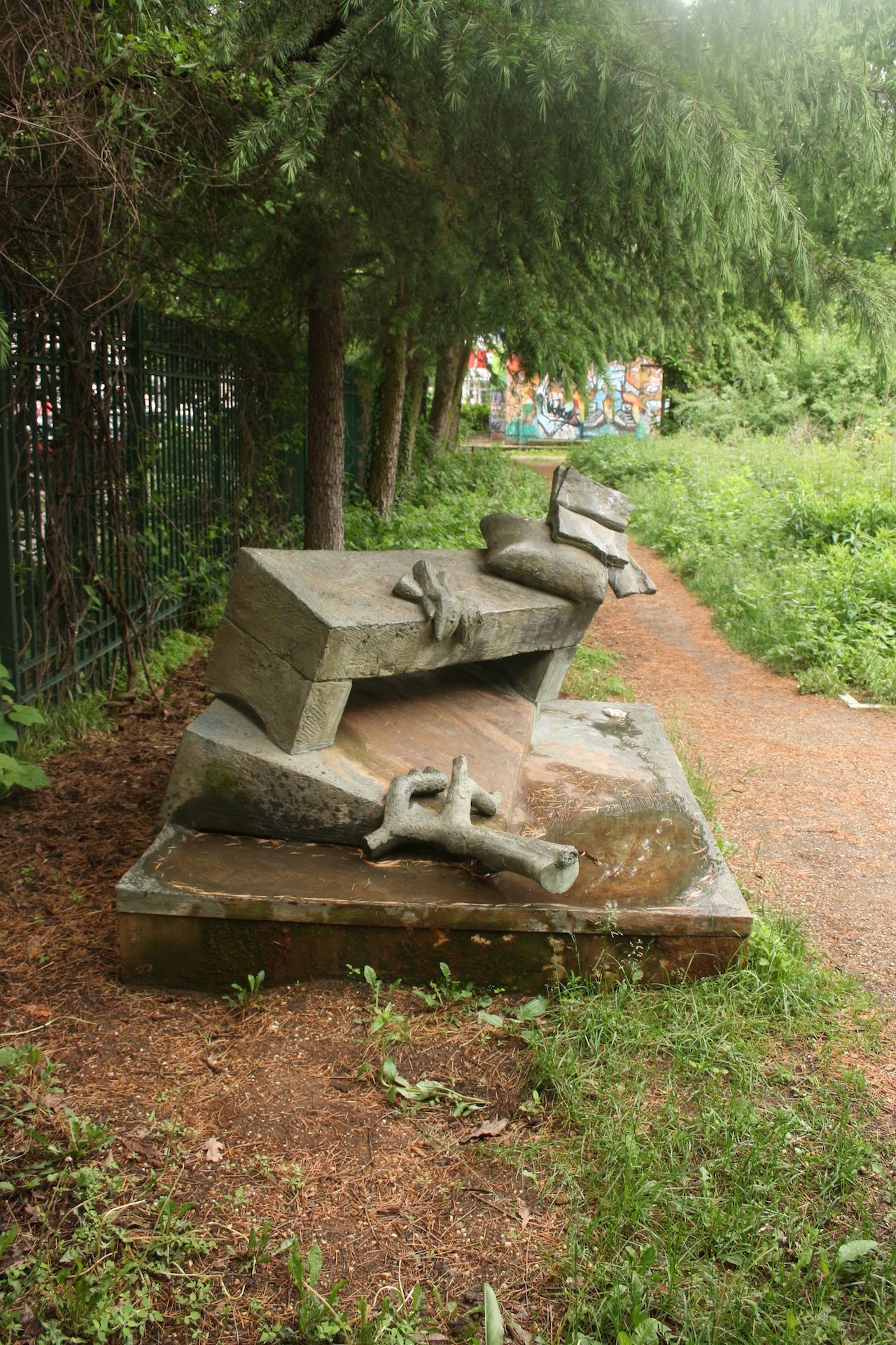 Am östlichen Rand des 1903 so benannten Arnimplatzes, im Bereich eines durch verschiedene Gestaltungsmittel vom restlichen Platzareal optisch getrennten „Gartens“, wurde 1998 der Rieselbrunnen mit dem Titel „Bettinas Bank“ aufgestellt. Das heute bekannteste schriftstellerische Werk der menschlich etwas schwierigen, nicht wenig kapriziösen Bettina von Arnims ist die sozialkritische Schrift „Dieses Buch gehört dem König“. Bekannt ist auch Bettinas große – unerwiderte - Verehrung für Goethe, für den sie ein monumental gedachtes, nur in Gips ausgeführtes Denkmal entwarf. Die Plastik „Bettinas Bank“ lässt viele Assoziationen zu und gewinnt dadurch an Bedeutung (Jörg Kuhn).