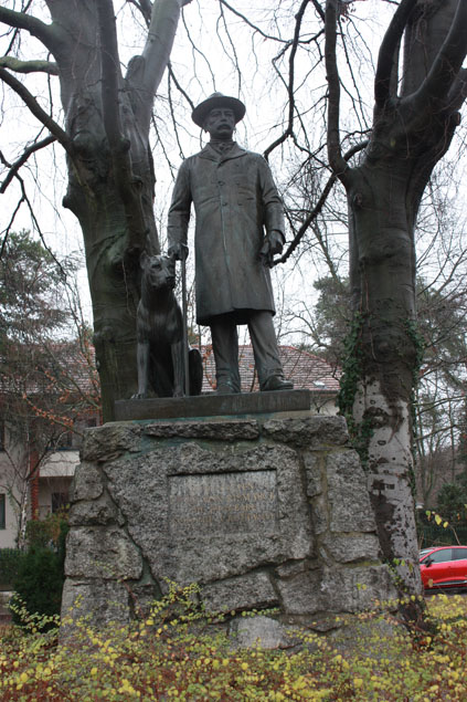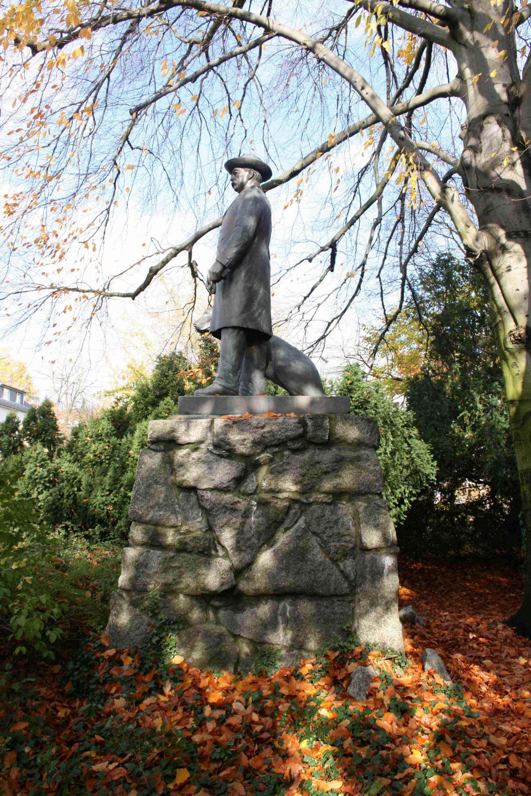 Bronzefigur im Zweiten Weltkrieg eingeschmolzen; eine Nachschöpfung von Harald Haacke wurde 1996 auf dem alten Granitsockel aufgestellt.