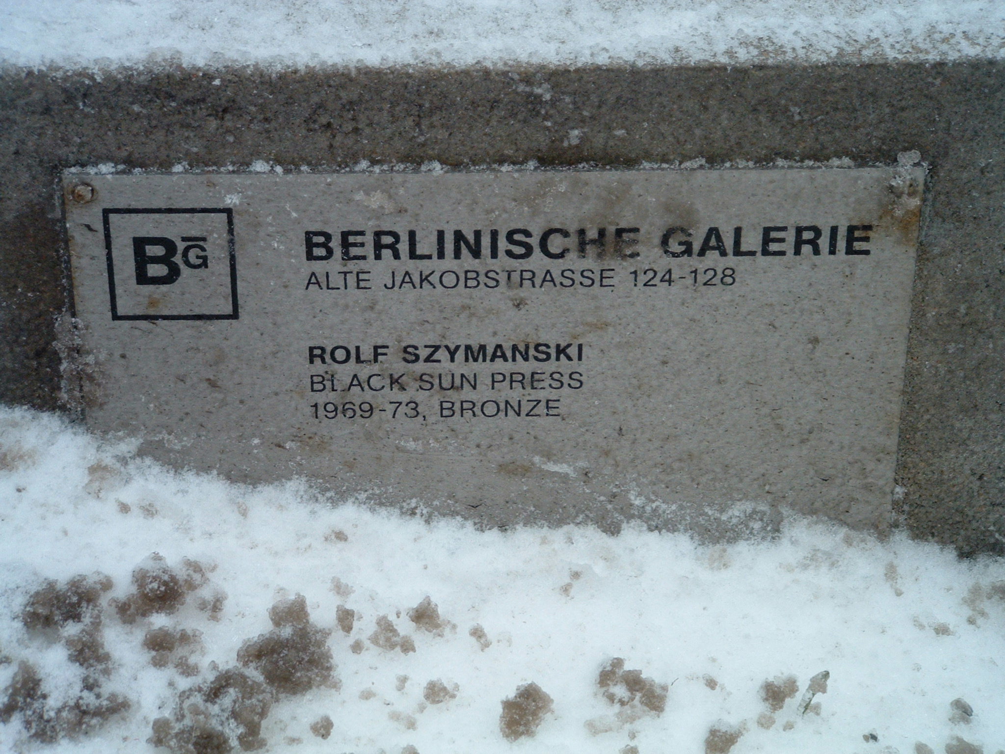 »BG BERLINISCHE GALERIE / ALTE JAKOBSTRASSE 124-128 / ROLF SZYMANSKI / BLACK SUN PRESS / 1969-73, BRONZE«