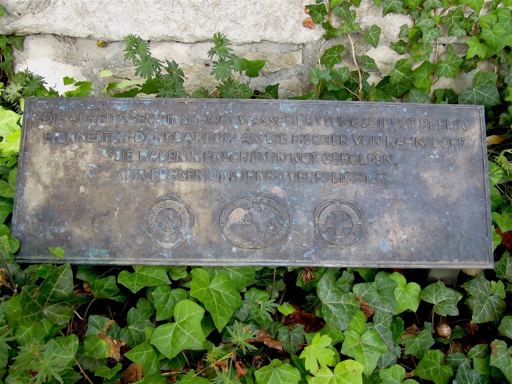 »ASB (Symbol) / Die Arbeitsgemeinschaft Wasserrettungsdienst Berlin / erinnert in Dankbarkeit an die Fischer von Rahnsdorf. / Sie haben Menschen in Not geholfen. / Wir fühlen uns ihnen verpflichtet.«