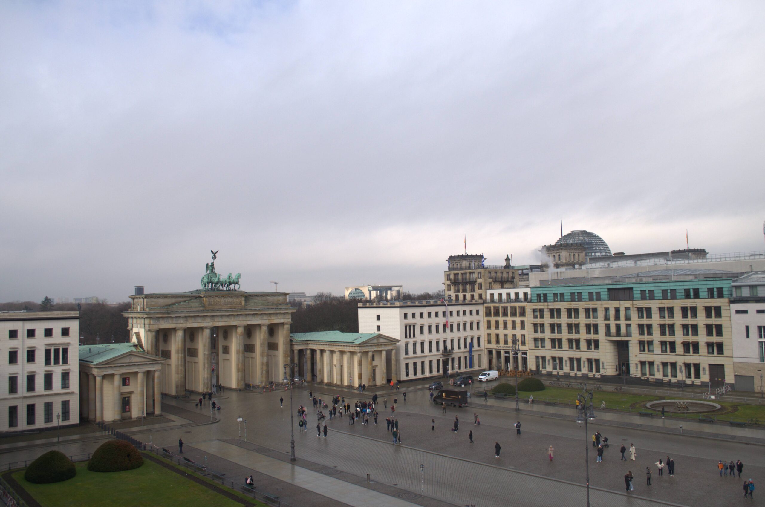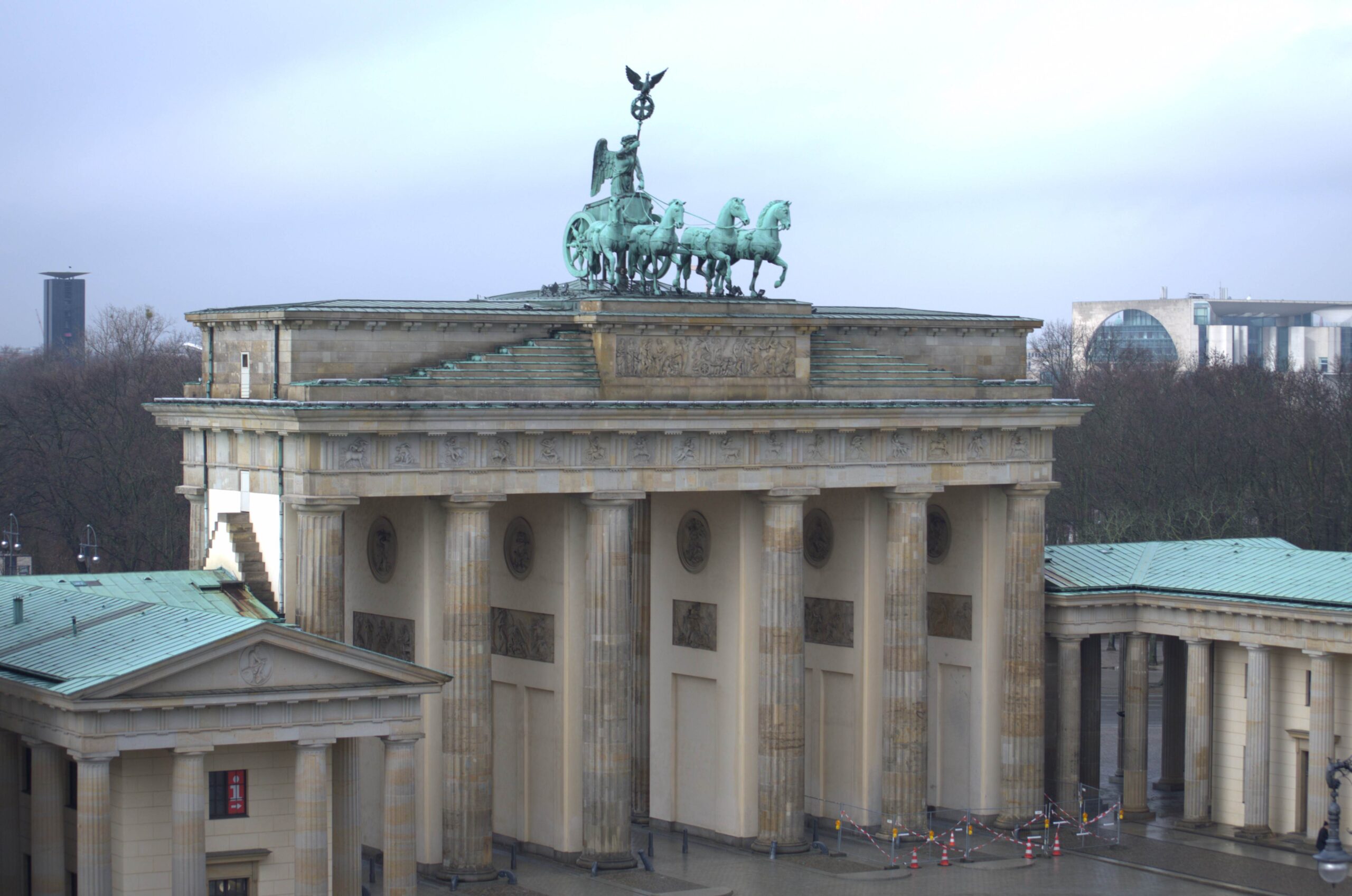 Das Brandenburger Tor am Pariser Platz ist ein frühklassizistisches Bauensemble, das im Laufe der städtebaulichen Geschichte Berlins unterschiedliche Funktionen als Stadt-, Friedens- und schließlich als Siegestor erfüllte. Die Einflüsse antiker griechischer und römischer Baukunst sind in der Gestaltung der monumentalen Toranlage erkennbar.