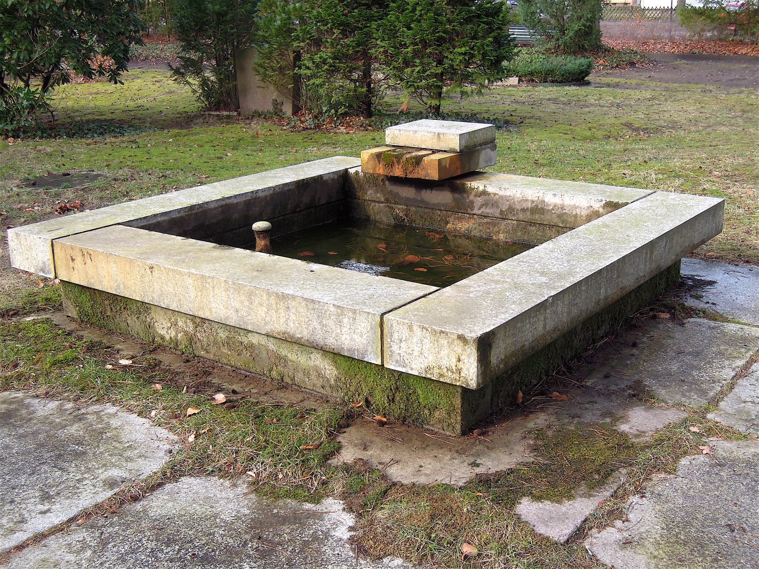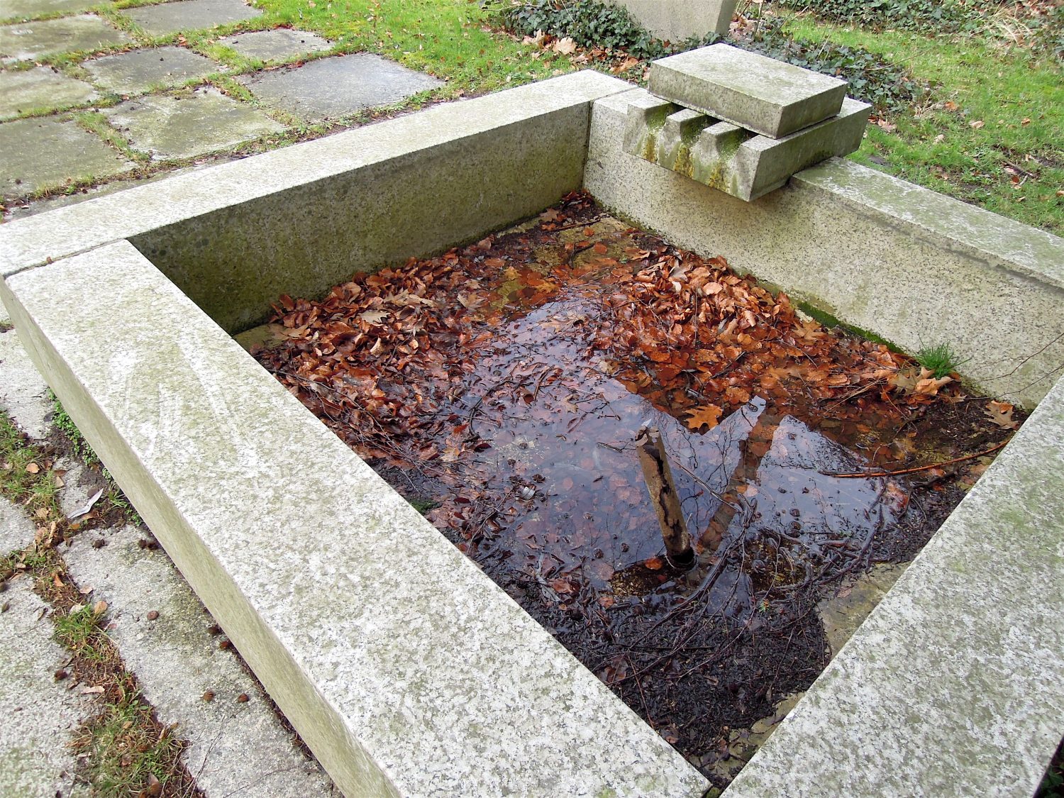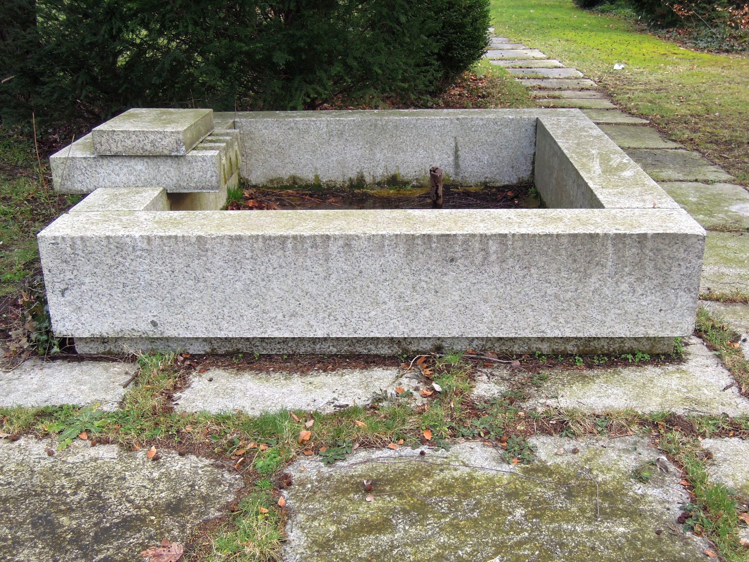 Auch ist sein Wassereinlauf anders. Bei den Brunnen A und B besteht er aus zwei übereinander liegenden Quadern, wobei der untere größere Block drei Rinnen für den Wassereinlauf hat. Dagegen ist der Wassereinlauf beim Brunnen C in eine Brunnenecke gelegt und der kleinere obere Quader hat einen mittigen Wasseraustritt mit Rinne. Die Brunnen sind nach Aussage der Friedhofsverwaltung in Betrieb (Jürgen Tomisch, Barbara Anna Lutz).