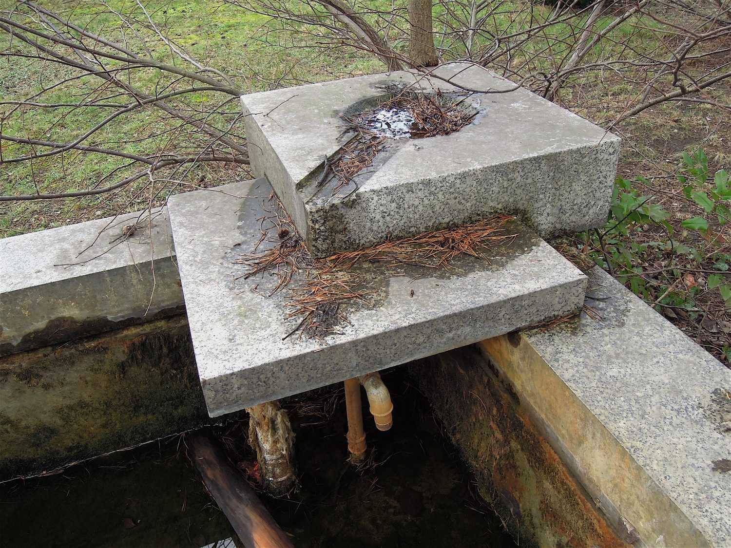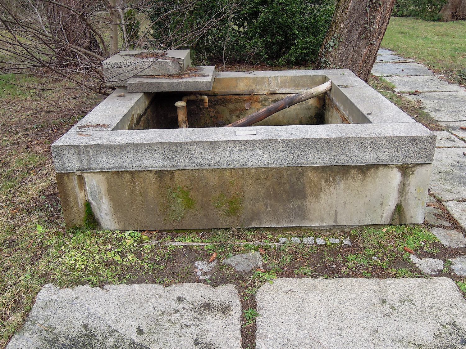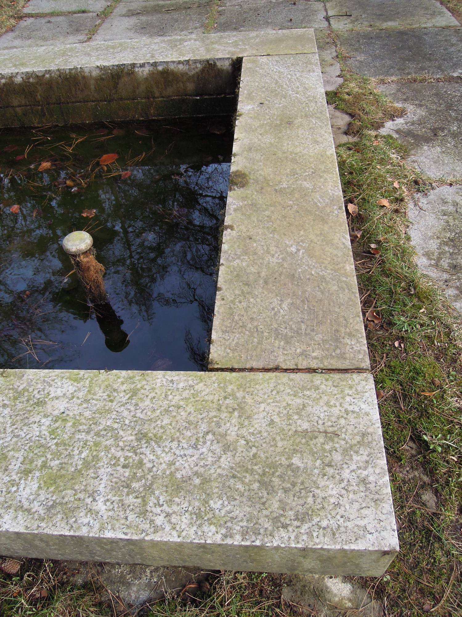 Auch ist sein Wassereinlauf anders. Bei den Brunnen A und B besteht er aus zwei übereinander liegenden Quadern, wobei der untere größere Block drei Rinnen für den Wassereinlauf hat. Dagegen ist der Wassereinlauf beim Brunnen C in eine Brunnenecke gelegt und der kleinere obere Quader hat einen mittigen Wasseraustritt mit Rinne. Die Brunnen sind nach Aussage der Friedhofsverwaltung in Betrieb (Jürgen Tomisch, Barbara Anna Lutz).