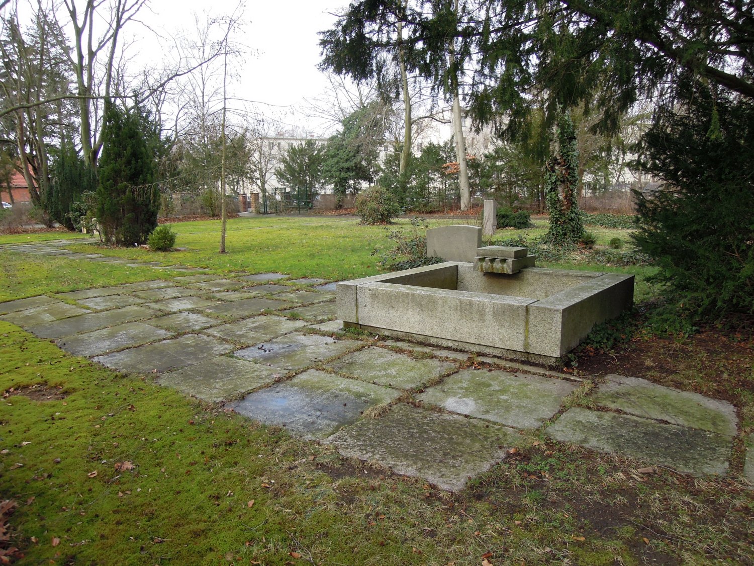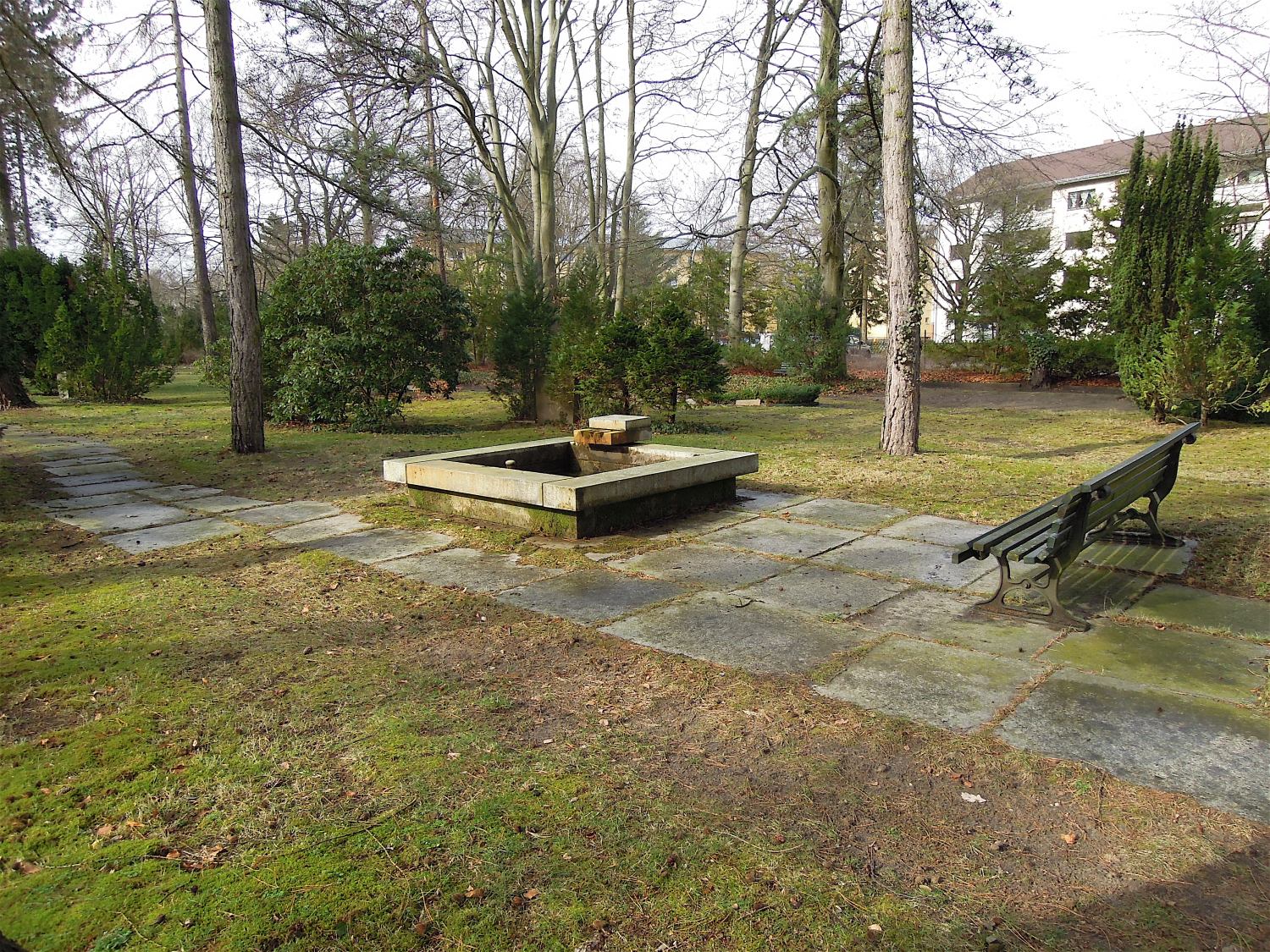 Der neue Friedhof für die Gemeinde Reinickendorf wurde 1890 eröffnet. Als in den 1950er/60er Jahren Friedhofsflächen entlang der Humboldtstraße für eine von Achsen freie parkähnliche Gestaltung mit weit verstreut stehenden Grabsteinen umgestaltet wurde, ließ der Bezirk Reinickendorf auch Brunnen errichten. Inmitten der gärtnerisch mit Plattenwegen und Ruheplätzen angelegten Abteilungen A, B und C entstanden 1967-68 drei von dem Berliner Bildhauer Max Rose entworfene Brunnenanlagen. Die Brunnen sind nicht nur Nutzbrunnen für die Grabpflege, sondern sie sind skulpturaler Schmuck des Friedhofs. Aufgestellt auf kleinen Plätzen mit Bänken, sind sie kontemplative Ruheorte für die Friedhofsbesucher (Jürgen Tomisch, Barbara Anna Lutz).