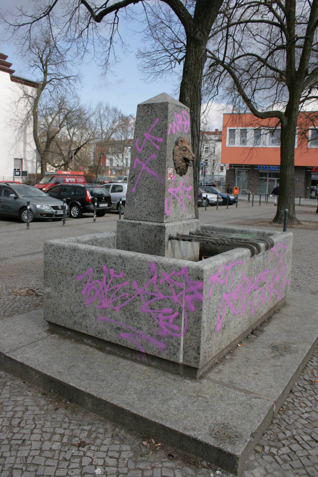 vollständig, nach freier Neuanfertigung der Löwenmaske; eine Informationstafel zur Sanierung von 2003 fehlt