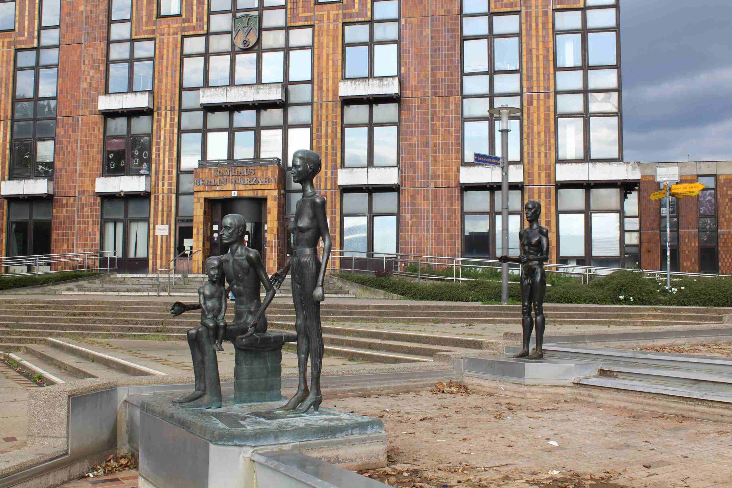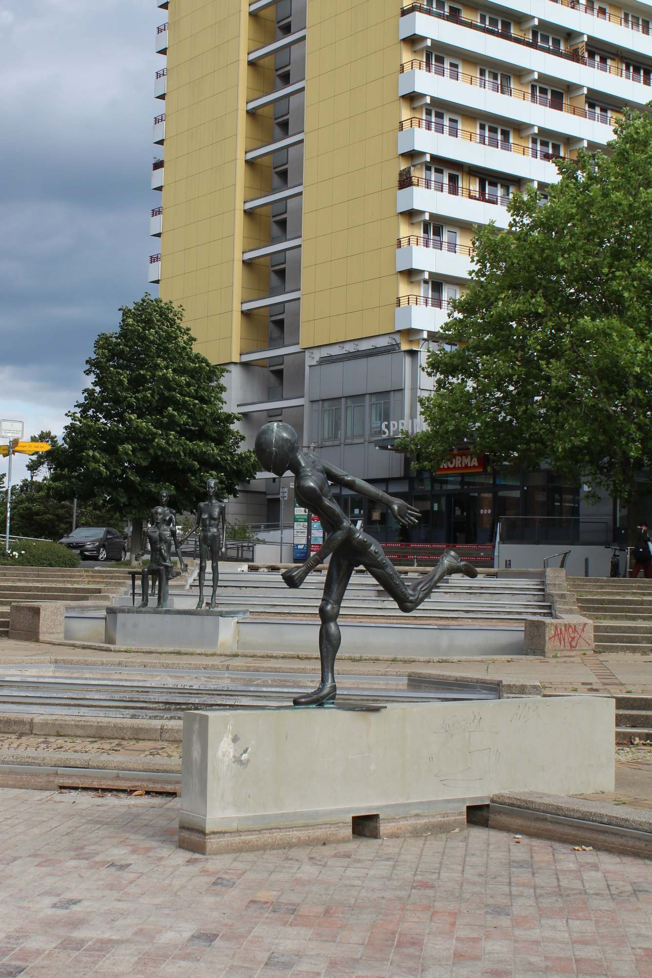 Vor der Fertigstellung der Brunnenanlage (bzw. Während des Baus) war ein Modell der Bronzefiguren im Informationszentrum des (ehem.) Rathauses, vor dem die Brunnenanlage platziert ist, zu sehen; Brunnensanierung 2007