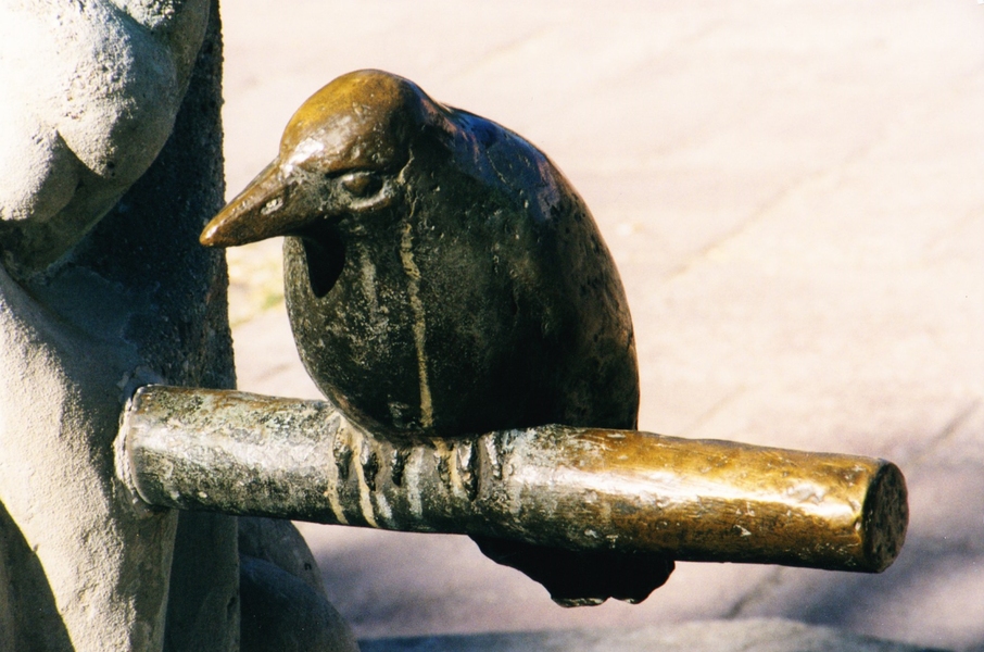 Bronze (Tierfiguren) (Materialarchiv) , nur noch Tauben auf den Stangen vorhanden
