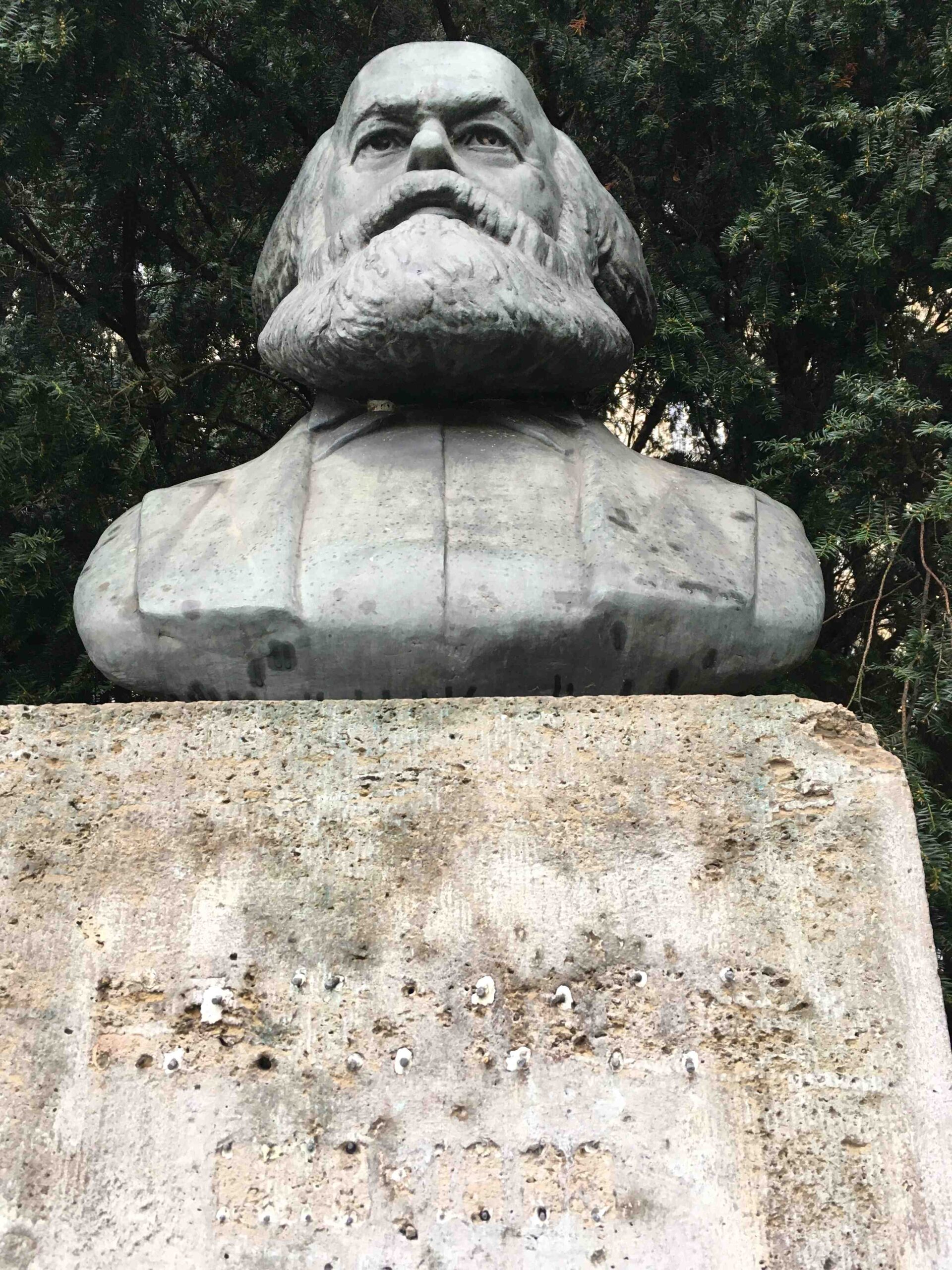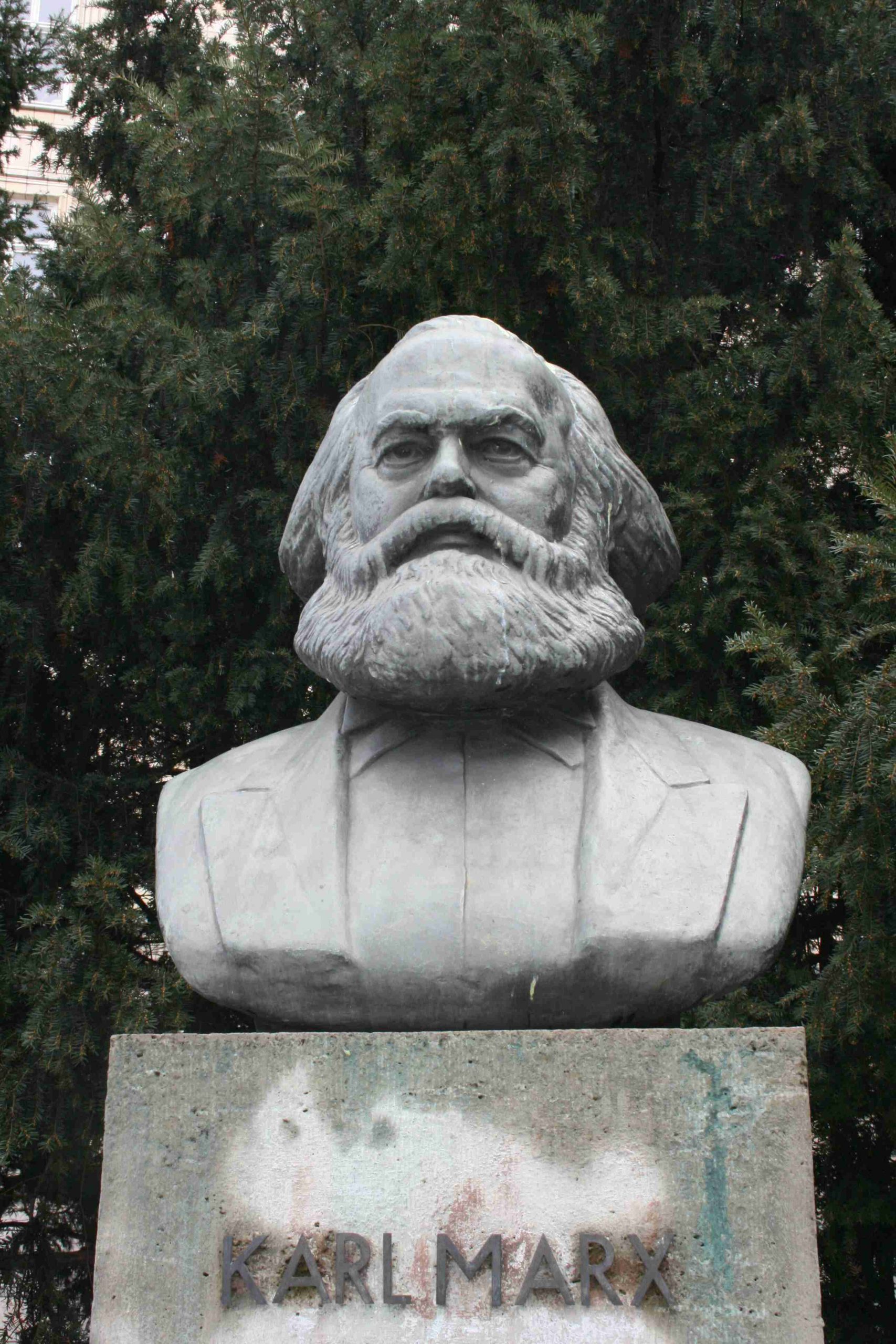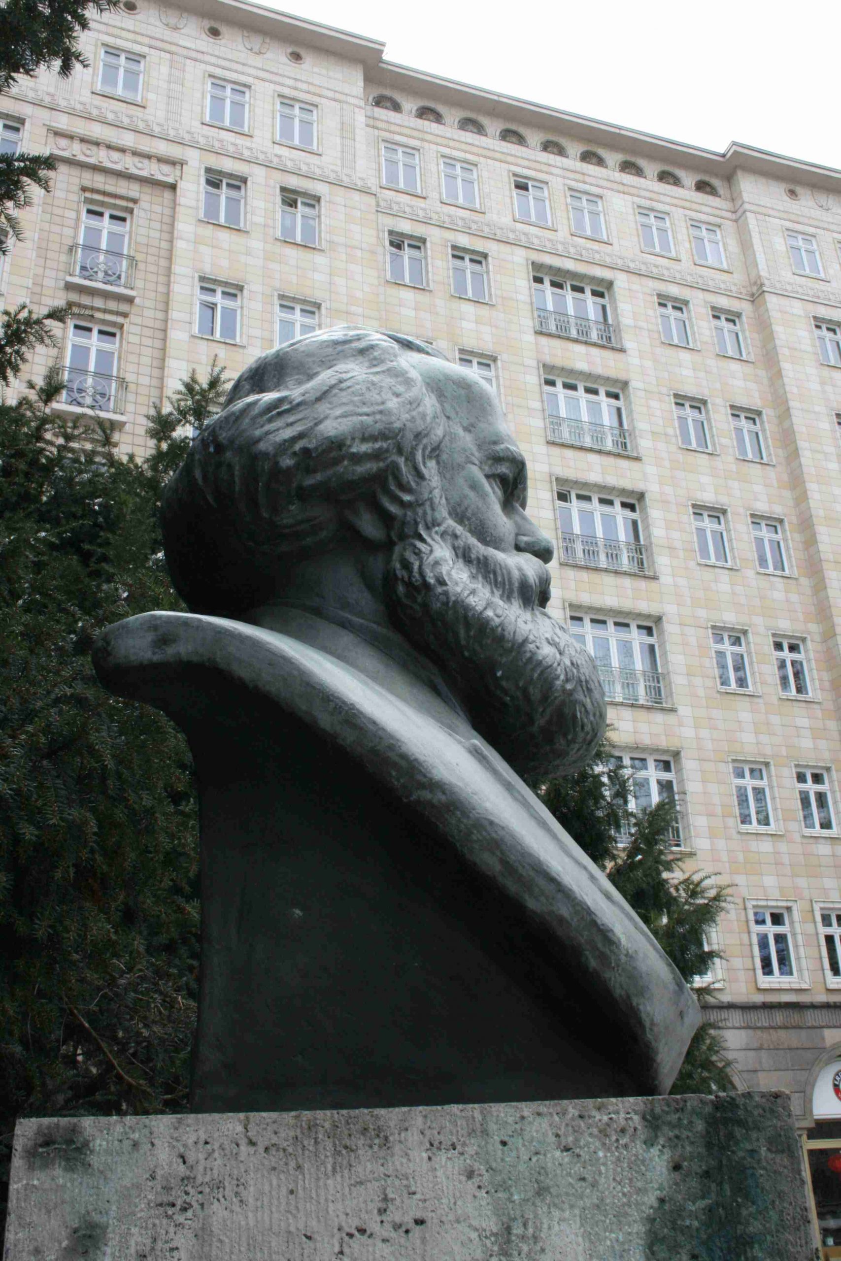 Voraussetzunge für die Aufstellung der Karl-Marx-Büste war der Wiederaufbau der Gegend um den Strausberger Platz nach deren fast vollständiger Zerstörung im II. Weltkrieg. Nach Ausschreibung eines städtebaulichen Wettbewerbs 1951 wurde Hermann Henselmann mit einem Kollektiv mit der Platzbebauung (1952-1955) beauftragt, ebenso mit der aufwändigen Bebauung der Karl-Marx-Allee (zwischen 1949 und 1961 Stalinallee) nach Moskauer Vorbild. Der Bildhauer Will Lammert war 1933 aufgrund seiner Mitgliedschaft bei der KPD zur Flucht aus Deutschland gezwungen, 1935 nahm er die Sowjetische Staatsbürgerschaft an und lebte in Moskau. Nach einer Denunziation wurde er aus der Stadt verbannt. 1951 konnte er, unterstützt von Johannes R. Becher, nach Berlin zurückkehren, seit 1952 war er Professor und Ordentliches Mitglied an der Akademie der Künste. 1953 ist die Büste Lammerts auf der Deutschen Kunstausstellung Dresden im Albertinum gezeigt worden. Ein Exemplar der Büste war anlässlich des 80. Todestages von Marx 1953 an der Jenaer Universität (innerhalb der „via triumphalis“) aufgestellt worden, Marx hatte hier seine Doktorwürde erhalten. Diese Büste war auf Beschluss des Senats der Universität 1991 abgeräumt und in ein Depot gestellt worden. Eine Wiederaufstellung wurde mehrfach diskutiert. Die Büste am Strausberger Platz, eine weitere Ausformung des gleichen Modells, war zunächst in der Berliner Universität (im Foyer neben dem Senatssaal) aufgestellt worden. Sie sollte daran erinnern, dass Marx zwischen 1836 und 1840 hier studiert hatte. Nach Aufstellung der Büste im Marx-Jahr 1983 am Strausberger Platz wurde in der Universität eine Kopie aufgestellt, die sich heute im Treppenhaus befindet. Will Lammert ließ (so die Auskunft des Sohnes Ule Lammert an das Kulturministerium DDR 1960) seine Arbeiten in Bronze grundsätzlich in der Gießerei Seiler und Siebert gießen (Susanne Kähler, Jörg Kuhn).