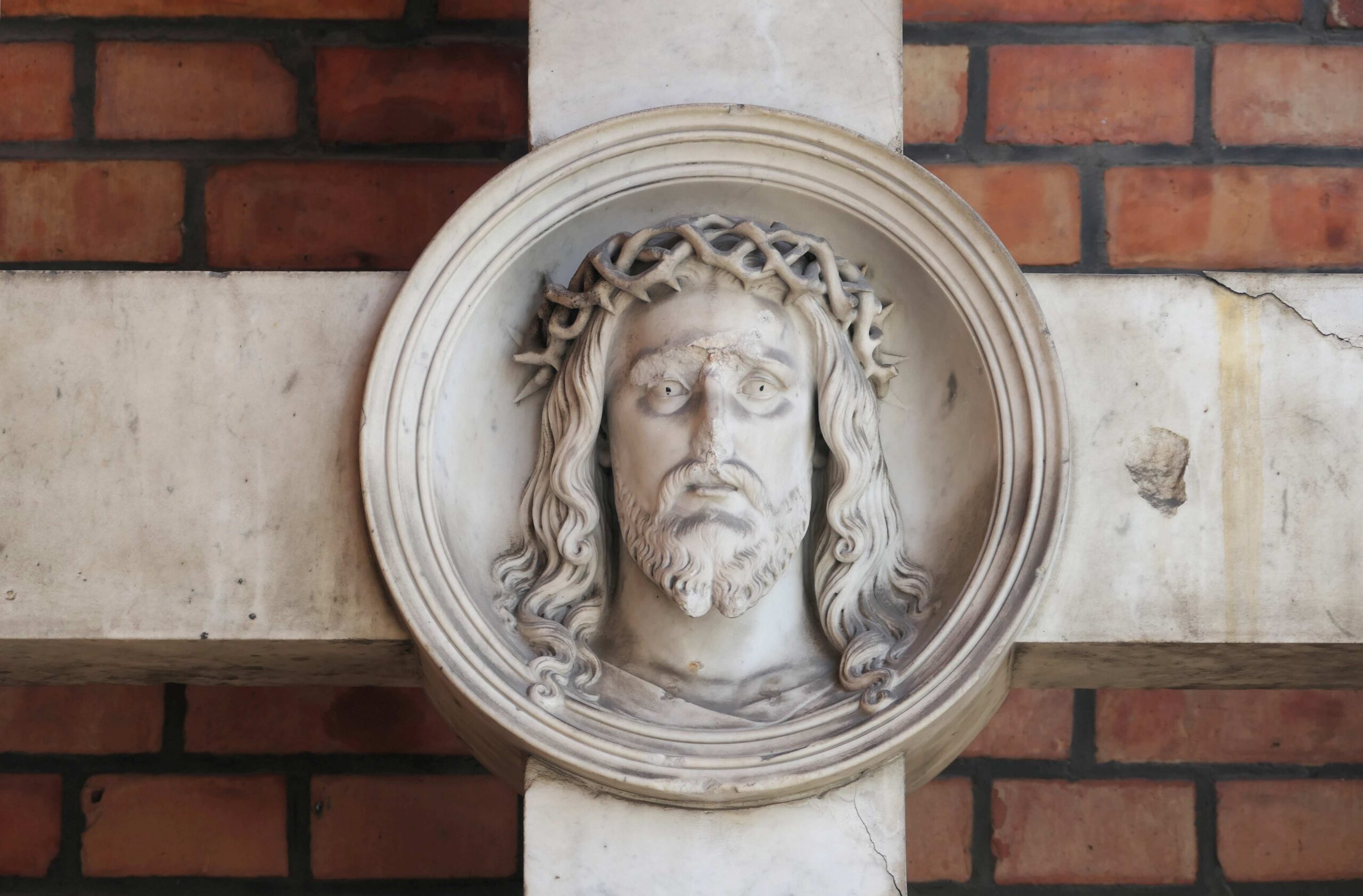 Das Kreuz aus carrarischem Marmor, eine Stiftung des Theologen Ernst Wilhelm Hengstenberg zum Gedenken an seine früh verstorbene Tochter Elisabeth, stand ursprünglich auf dem Altar der Kirche, wo es am 05. März 1861 Aufstellung fand. Auch die Kosten für das Kreuzmedaillon sind überliefert: „Dem Bildhauer Wolff für die Anfertigung eines Christus-Kopfes an dem Marmorkreuze auf dem Altar 160 Thaler.“ (Rocha, 1911, S. 79). Im Zuge der Wiederherstellungsarbeiten in den 1950er Jahren wurde das Altar-Kreuz in der Vorhalle aufgestellt (Nicola Vösgen).