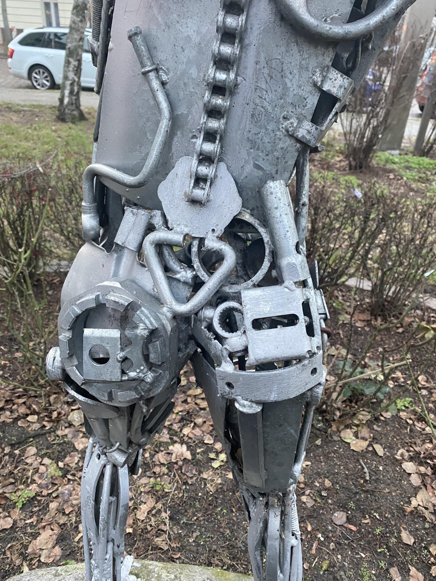 Die Plastik „Das Gewehr zerbrechen“ von Antonio Monitillo zeigt in abstrakter Weise eine menschliche Figur, die ein zerbrochenes Gewehr über dem Kopf hält. Die Figur steht aufrecht und in einem sicheren Stand (das linke Bein angewinkelt) auf einem naturbelassenen Stein. Der Künstler nutzte für die Plastik eine Menge an Metall- und Bauteilen aus der Industrie sowie diversen Metallfundstücken, die zusammengeschweißt und verankert eine, dem menschlichen Körper sehr nahe kommende, plastische Form bzw. Figur bilden.