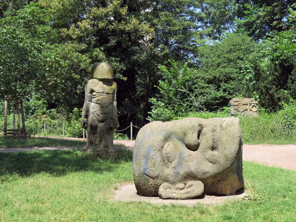 Vom 31. Juli bis zum 30. September 1987 fand das 2. Internationale Berliner Bildhauersymposium im Schlosspark in Berlin Buch statt. Teilnehmer waren acht Bildhauer_innen aus Bulgarien, der CSSR, Finnland, Polen, Rumänien, Syrien, der UDSSR und Ungarn sowie sechs Künstler aus der DDR (Rolf Biebl, Clemens Gröszer, Karl Blümel, Claus-Lutz Gaedicke, Michael Mohns und Jürgen Pansow). Die unter der Schirmherrschaft des Magistrats von Berlin durchgeführte Sommerwerkstatt trug das Motto „Poesie der Großstadt“. Allen Künstlern wurde Reinhardtsdorfer Sandstein für Ihre Arbeiten zur Verfügung gestellt. In der „Bildenden Kunst“ war im September 1987 zu lesen, dass die Symposiums-Plastiken anschließend in der „neueröffneten Berliner Gartenschau“, dem im Mai 1987 eröffneten Erholungspark in Berlin-Marzahn, Aufstellung finden sollten (Nachrichten aus der DDR. Berlin (o.V.), in: Bildende Kunst. 35. Jg., 1987, Heft 9, S. 431). Hierbei handelte es sich um eine Fehlinformation, denn in Marzahn waren bereits die Plastiken aus dem 1. Internationalen Bildhauersymposium von 1984 aufgestellt. Im Februar 1986 war in der „Kunstkonzeption - Konkretisierung bezüglich Plastik [für den] Wohnkomplex Leninallee, Ho-Chi-Minh-Str., 3. WG, 4. BA, Kunstkonzeption für Plastik im Freiraum“ vorgeschlagen worden, dass die „Ergebnisse der Bildhauer Symposien in Reinhardtsdorf … vollständig im Freizeitpark am Fennpfuhl im Rahmen einer mehrmonatigen (max. 2-jährig.) Ausstellung der Öffentlichkeit vorgestellt ...“ werden sollten (Landesarchiv Berlin, C Rep. 735, Nr. 221, unpag.). Als Hauptstandort für die Plastiken war der Bereich zwischen Sporthalle und der ehemaligen Gaststätte „Seeterrasse“, also der Bereich westlich des Fennpfuhlsees, vorgesehen. Im Januar 1988 sind die Fundamente für die Plastiken im Fennpfuhlpark errichtet worden, am 24. März 1988 fand die Abnahme der hier zunächst temporär aufgestellten Plastiken statt (Landesarchiv Berlin, C Rep. 735, Nr. 64, unpag.). Zu diesem Zeitpunkt war vorgesehen, dass die Plastiken später ihre endgültigen Standorte an markanten Plätzen in Berlin erhalten sollten. In dem Magistratsbeschluss 570/88 vom 2. Dezember 1988 wurde jedoch „der Park am Anton-Saefkow-Platz als endgültiger Standort für die zum 2. Internationalen Bildhauersymposium 1987 entstandenen Plastiken bestätigt.“ (a.a.O.). Seit Februar 1989 unterstehen die Plastiken dem Stadtbezirksgartenamt Berlin-Lichtenberg (Landesarchiv Berlin, C Rep. 735, Nr. 357, unpag.). Von den 14 Plastiken, die im Rahmen des Symposiums geschaffen wurden, befinden sich aktuell 11 Skulpturen im Fennpfuhlpark. Die Gemeinschaftsarbeit der beiden Berliner Bildhauer Rolf Biebl und Clemens Gröszer ist am März 1988 an dieser Stelle aufgestellt worden. In einem längeren Beitrag über das Bildhauersymposium wurde die Gruppe folgendermaßen interpretiert: „Von außerordentlich starker Wirkung auch die zusammengehörigen Plastiken ‚Goliath‘ und ‚David‘ von Gröszer und Biebl, die beide in einer Künstlergemeinschaft zusammenarbeiten. Sie haben dem alten biblischen Geschehen eine neue Ausdeutung gegeben. Dem an Köpfe der altmexikanischen Olmekenkultur erinnernden abgeschlagenen Riesenhaupt des Goliath steht ein durch das heruntergeklappte Visier seines überdimensionierten Helmes gesichtloser [sic!] David gegenüber. Dieser ist wohl Sieger des Zweikampfes, verkörpert aber keineswegs das Gute. Er war nur der Schlauere, der besser Gerüstete. Aber auch ihn hat die als Mittel der Auseinandersetzung gewählte Gewalt brutal gemacht.“ (Pretzsch, Lutz: Thema: Die Poesie der Großstadt. Das 2. Internationale Bildhauersymposium Berlin, in: Berliner Zeitung, 43. Jg., 26.09.1987, S. 10). Fotos aus den 1990er und 2000er Jahren belegen, dass die beiden Figuren immer wieder völlig beschmiert waren und zwischenzeitlich gereinigt wurden (Nicola Vösgen).