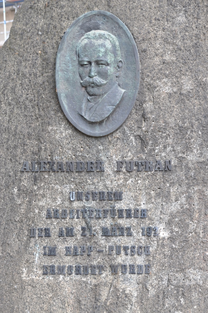 »ALEXANDER FUTRAN / UNSER / ARBEITERFÜHRER / DER AM 21. MÄRZ 1920 / IM KAPP-PUTSCH / ERMORDET WURDE«