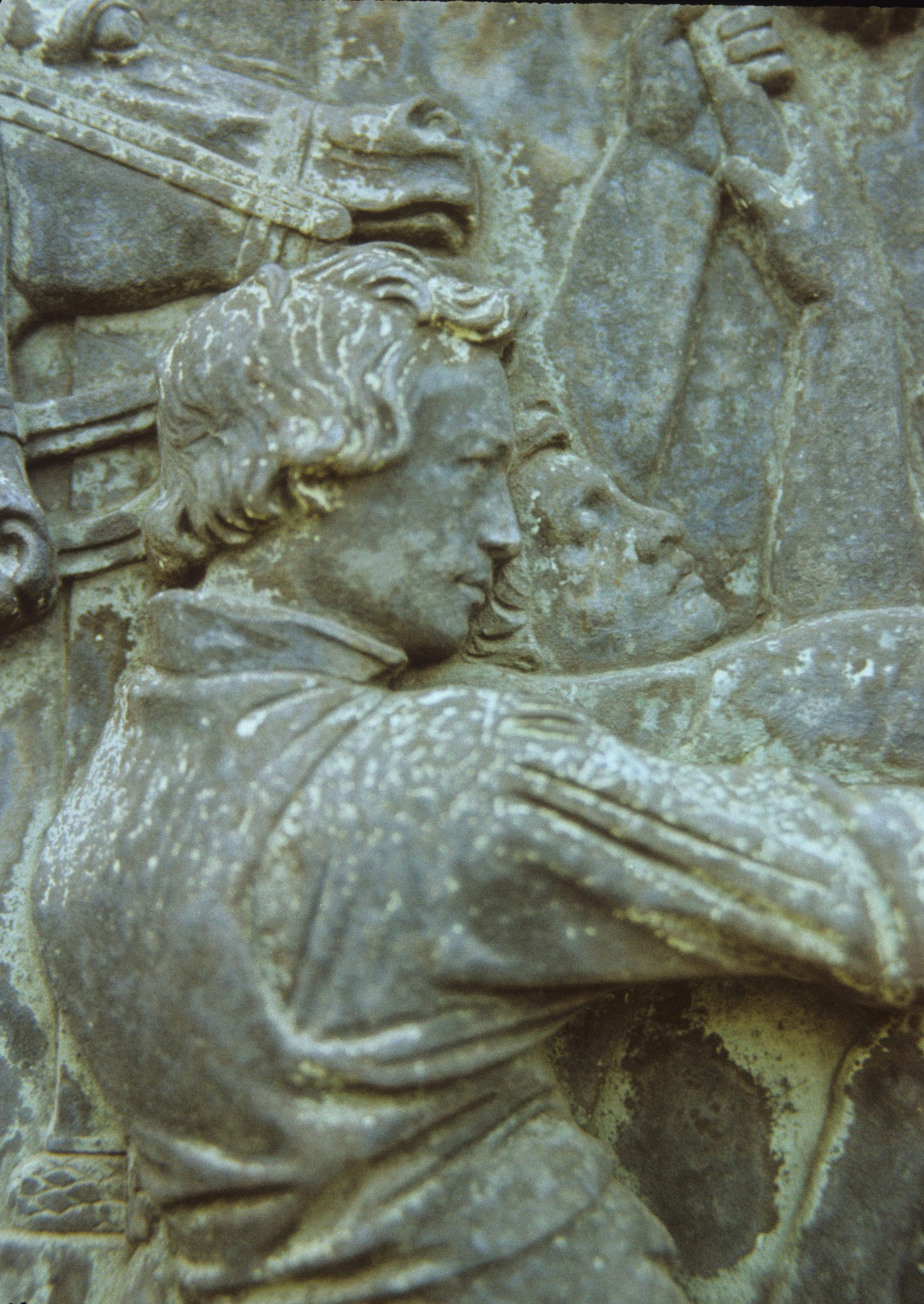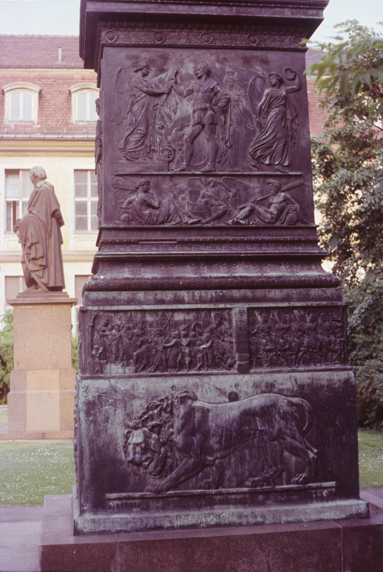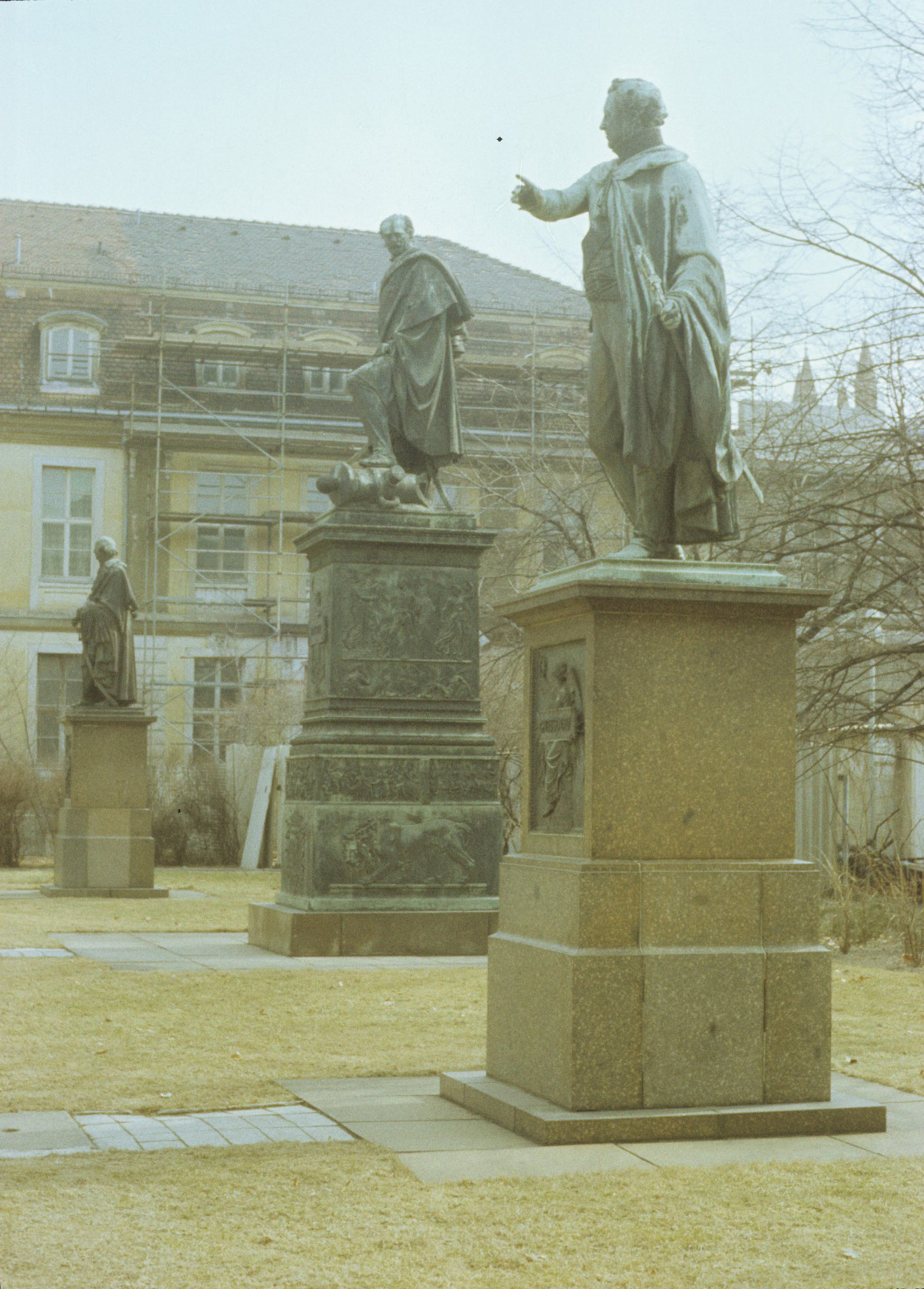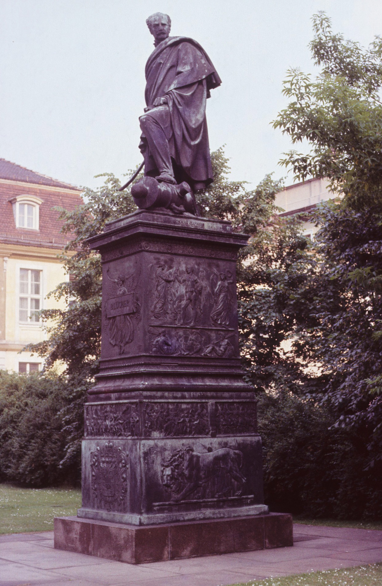 Einweihung an der Straße Unter den Linden: 18.6.1826. Ehem. Eisengitter sind verloren. 1950/1951 abgebaut, 1963/1964 am südlichen Ende der Grünanlage westlich des Operncafés (Prinzessinnenpalais) wieder aufgestellt. Die Bronzen wurden zuletzt bis Dezember 2008 vor Ort von der Fa. Bernd H. Helmich, Berlin-Adlershof, saniert (Jörg Kuhn).