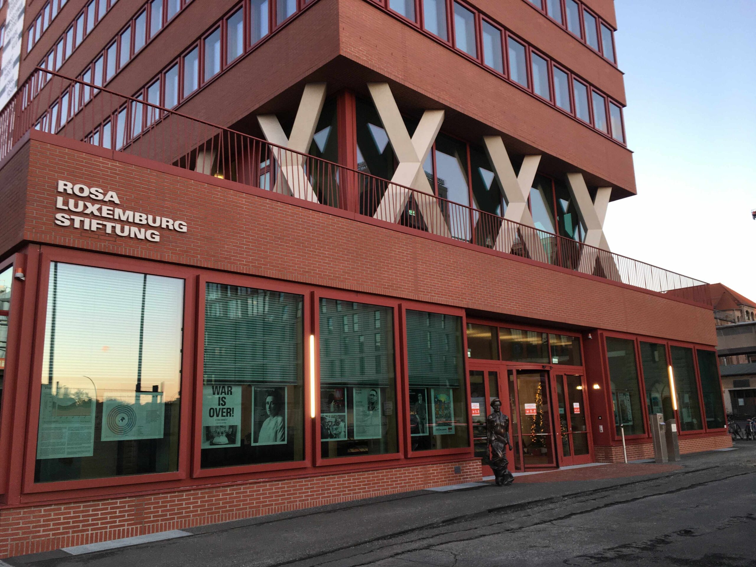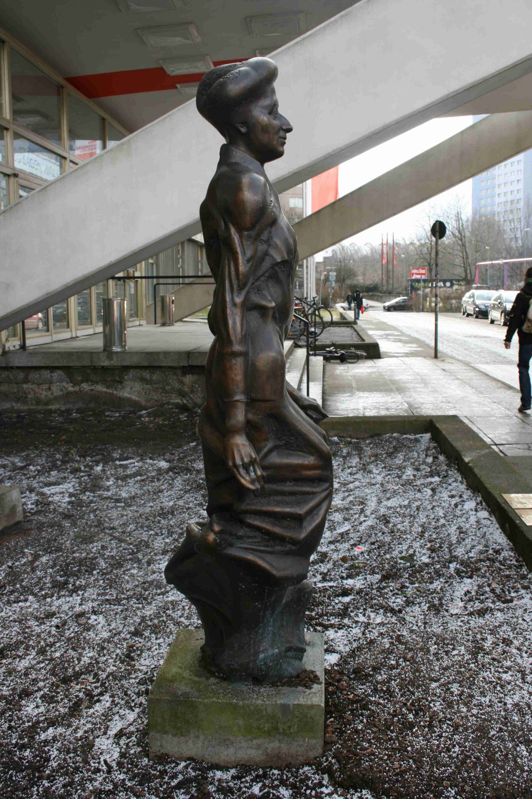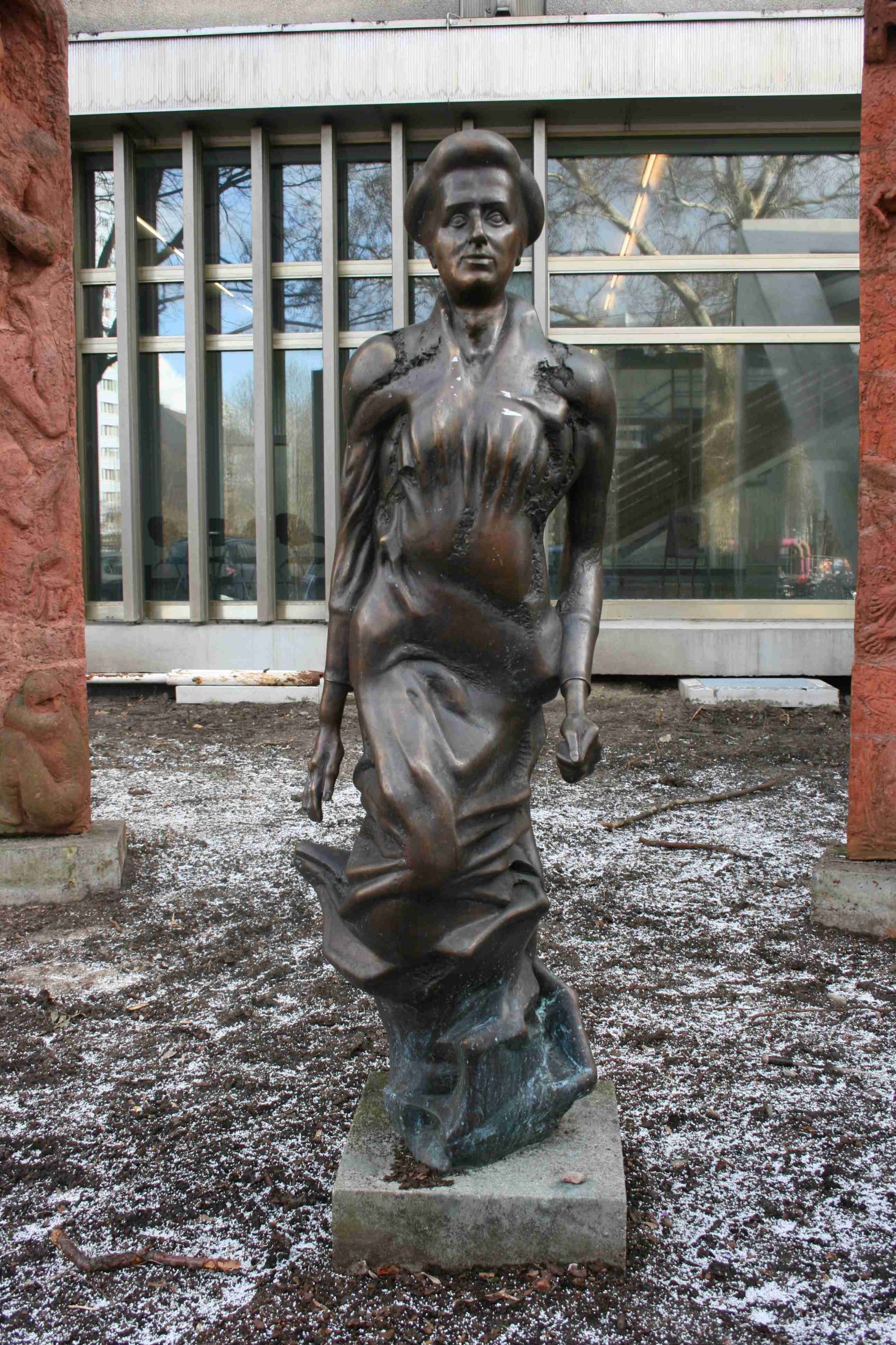 Dr. Rosa Luxemburg (1871-1919) ist eine der bekanntesten deutschen Politikerinnen des ausgehenden 19. und beginnenden 20. Jahrhunderts. „Im Verlauf des Jahres 1998 gründete sich in Berlin der Initiativkreis „Ein Zeichen für Rosa Luxemburg“ mit der Absicht, im öffentlichen Raum, auf dem Rosa-Luxemburg-Platz im Zentrum Berlins, dieser Frau sichtbar und dauerhaft zu gedenken. Die Ergebnisse der in diesem Zusammenhang geführten Debatten über Rosa Luxemburg, über existierende Denkmäler für sie und über die eng mit ihr verbundene Geschichte der Sozialisten in Berlin, deren Erinnerungsort der Friedhof in Berlin-Friedrichsfelde ist, liegen als Dokumentation für jeden zugänglich vor: Ein Zeichen für Rosa Luxemburg. Deutungsmuster eines politischen Lebens. Diskussionsprozesse 1998-2000. Dokumentation, Herausgegeben vom Initiativkreis „Ein Zeichen für Rosa Luxemburg“, Berlin 2000. Die Bezirksverordnetenversammlung Berlin-Mitte unterstützte dieses Projekt und stimmte am 12. November 1998 einem Zeichen für Rosa Luxemburg auf dem nach ihr benannten Platz zu. Die PDS, vor deren Zentrale das in ihrem Auftrag von Rolf Bibl (sic!, JK) und Ingeborg Hunzinger geschaffene Denkmal in dieser Zeit provisorisch aufgestellt war, übergab diese Arbeit wenig später der Rosa-Luxemburg-Stiftung als Leihgabe. Der Rosa-Luxemburg-Platz wartet seitdem darauf, das viel diskutierte Denkzeichen für Rosa Luxemburg aufzunehmen“ (Evelin Wittich, 2004). Der Guss erfolgte auf dem Gebiet der 1993 aufgelösten Tschecheslowakei (freundliche Mitteilung von Herrn Walter von der Rosa-Luxemburg-Stiftung). 2021 wurde die Plastik von ihrem ehemaligen Standort am Franz-Mehring-Platz 1 an den neuen Standort der Rosa-Luxemburg-Stiftung in die Straße der Pariser Kommune am Ostbahnhof versetzt. Eine Zweitausführung der Figur befindet sich am Bürohaus der Zeitung „Junge Welt“ Torstraße, Ecke Prenzlauer Allee (freundl. Mitteilung von Herrn Walter, Berlin) (Jörg Kuhn, Susanne Kähler).