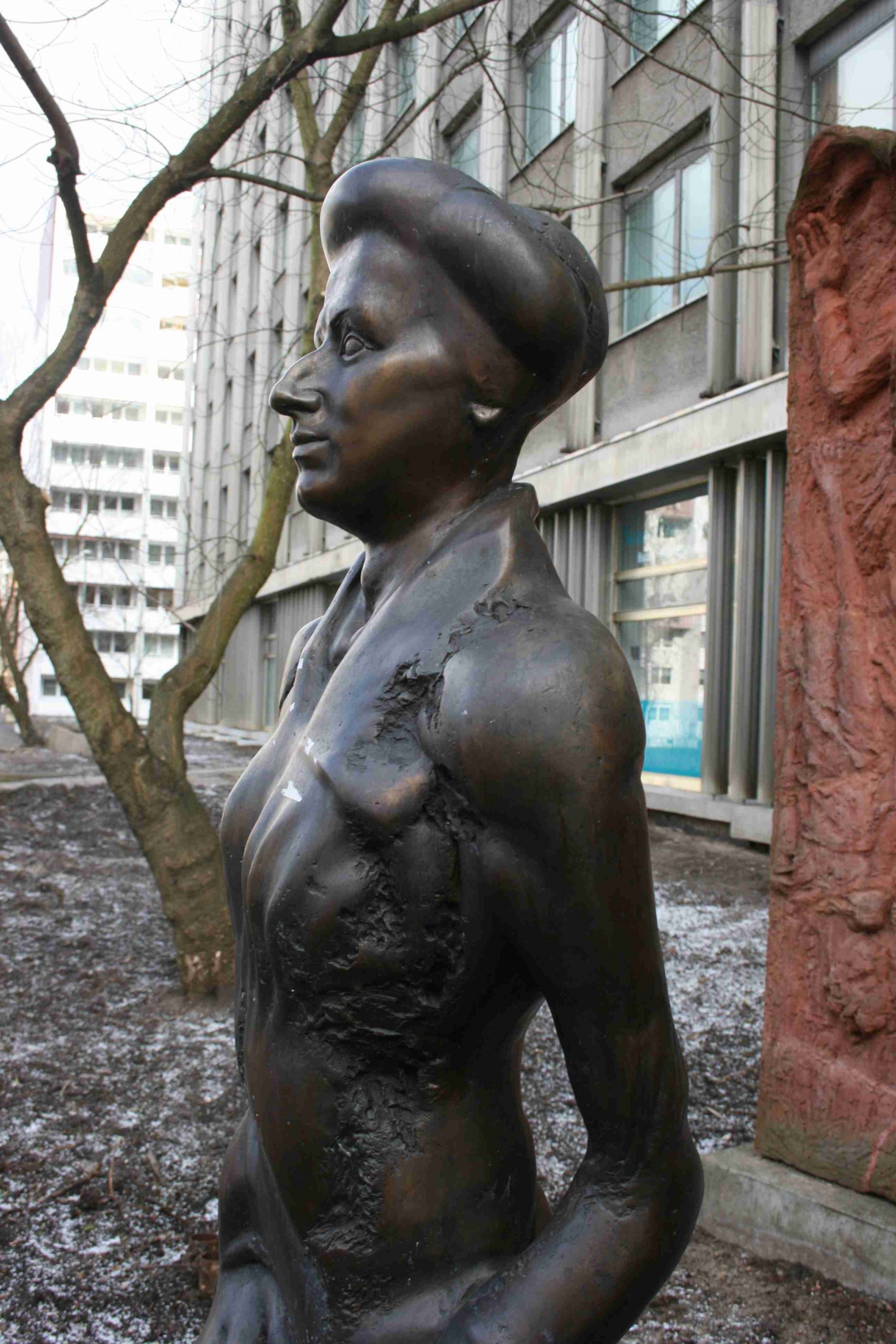 Dr. Rosa Luxemburg (1871-1919) ist eine der bekanntesten deutschen Politikerinnen des ausgehenden 19. und beginnenden 20. Jahrhunderts. „Im Verlauf des Jahres 1998 gründete sich in Berlin der Initiativkreis „Ein Zeichen für Rosa Luxemburg“ mit der Absicht, im öffentlichen Raum, auf dem Rosa-Luxemburg-Platz im Zentrum Berlins, dieser Frau sichtbar und dauerhaft zu gedenken. Die Ergebnisse der in diesem Zusammenhang geführten Debatten über Rosa Luxemburg, über existierende Denkmäler für sie und über die eng mit ihr verbundene Geschichte der Sozialisten in Berlin, deren Erinnerungsort der Friedhof in Berlin-Friedrichsfelde ist, liegen als Dokumentation für jeden zugänglich vor: Ein Zeichen für Rosa Luxemburg. Deutungsmuster eines politischen Lebens. Diskussionsprozesse 1998-2000. Dokumentation, Herausgegeben vom Initiativkreis „Ein Zeichen für Rosa Luxemburg“, Berlin 2000. Die Bezirksverordnetenversammlung Berlin-Mitte unterstützte dieses Projekt und stimmte am 12. November 1998 einem Zeichen für Rosa Luxemburg auf dem nach ihr benannten Platz zu. Die PDS, vor deren Zentrale das in ihrem Auftrag von Rolf Bibl (sic!, JK) und Ingeborg Hunzinger geschaffene Denkmal in dieser Zeit provisorisch aufgestellt war, übergab diese Arbeit wenig später der Rosa-Luxemburg-Stiftung als Leihgabe. Der Rosa-Luxemburg-Platz wartet seitdem darauf, das viel diskutierte Denkzeichen für Rosa Luxemburg aufzunehmen“ (Evelin Wittich, 2004). Der Guss erfolgte auf dem Gebiet der 1993 aufgelösten Tschecheslowakei (freundliche Mitteilung von Herrn Walter von der Rosa-Luxemburg-Stiftung). 2021 wurde die Plastik von ihrem ehemaligen Standort am Franz-Mehring-Platz 1 an den neuen Standort der Rosa-Luxemburg-Stiftung in die Straße der Pariser Kommune am Ostbahnhof versetzt. Eine Zweitausführung der Figur befindet sich am Bürohaus der Zeitung „Junge Welt“ Torstraße, Ecke Prenzlauer Allee (freundl. Mitteilung von Herrn Walter, Berlin) (Jörg Kuhn, Susanne Kähler).