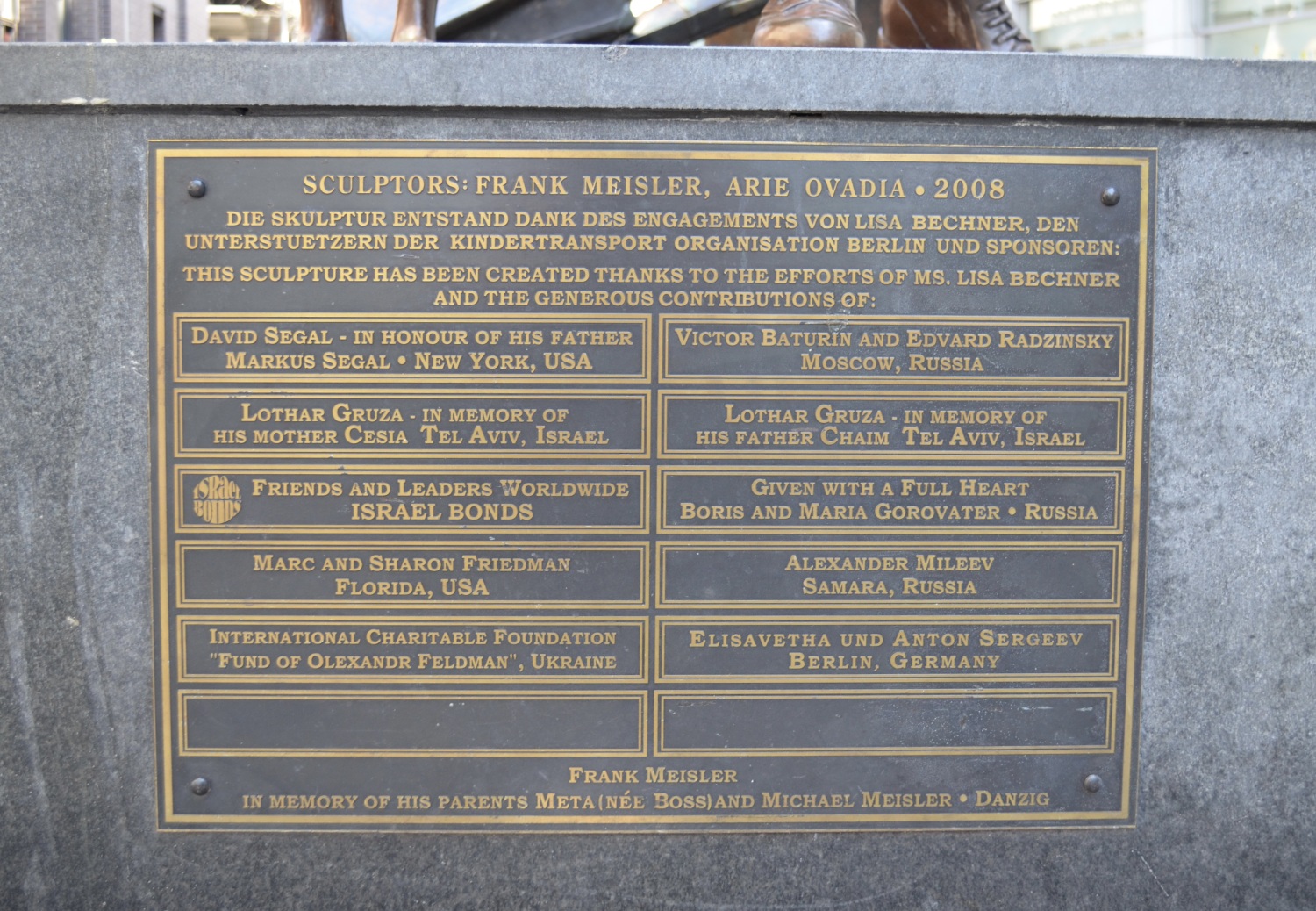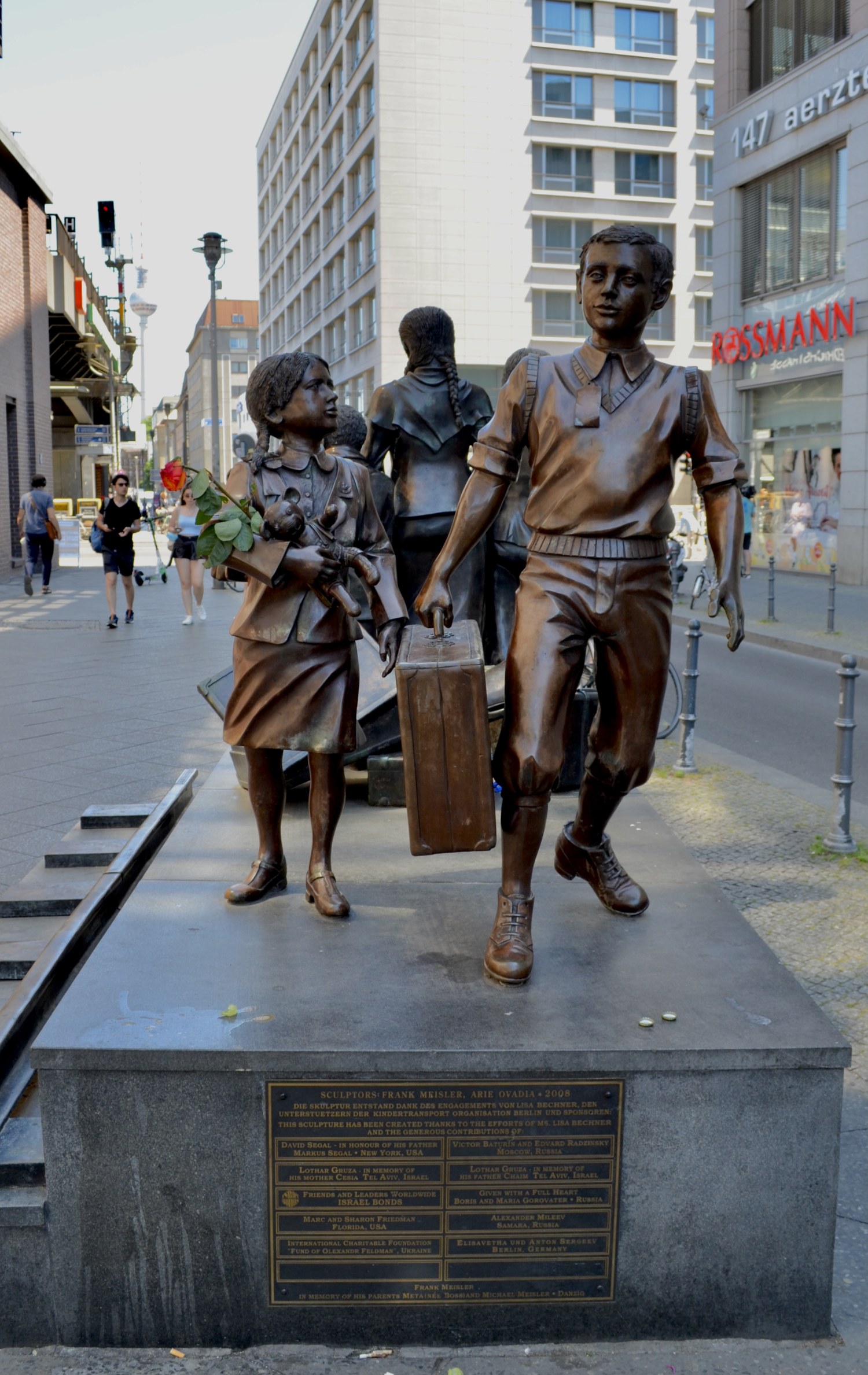 Am Fern-, S- und U-Bahnhof Friedrichstraße wurde am 30. November 2008 im Beisein von überlebenden Zeitzeugen aus Berlin und dem internationalen Ausland das Denkmal zur Erinnerung an die "Kindertransporte" nach Groß Britannien und die Deportation vom Kindern in die NS-Vernichtungslager während der nationalsozialistischen Diktatur enthüllt. Am 1.12.1938 fuhr der erste "Kindertransport" vom Anhalter Bahnhof in Berlin in Richtung London ab. Es war für die Mehrzahl der durch die menschenverachtende, grausame Vernichtungspolitik des NS-Staates vom Tod bedrohten Familien die einzige Möglichkeit, ihre Kinder vor der Ermordung zu retten. Initiator und Schöpfer des Modells war der Bildhauer Frank Meisler, selbst einer der durch die "Kindertransporte" ab 1938 Geretteten. Meisler organisierte die "Schenkung" der Skulptur, der 2009-2015 thematisch zugehörige Denkmäler in anderen Städten mit dem gleichen historischen Kontext folgen sollten (London, Danzig, Hamburg, Rotterdam/Hoek van Holland). Im Beisein des Künstlers und mit Redebeiträgen von Zeitzeugen und deren Nachkommen, sowie offiziellen Vertretern wie dem zwischen 2002 und 2011 amtierenden Polizeipräsidenten Dieter Glitsch, dessen Polizeischüler das Anliegen aktiv unterstützten und dem Bürgermeister des Bezirkes Berlin-Mitte, Dr. Christian Hanke, wurde das Denkmal in einer Feierstunde seiner Bestimmung übergeben (Jörg Kuhn).