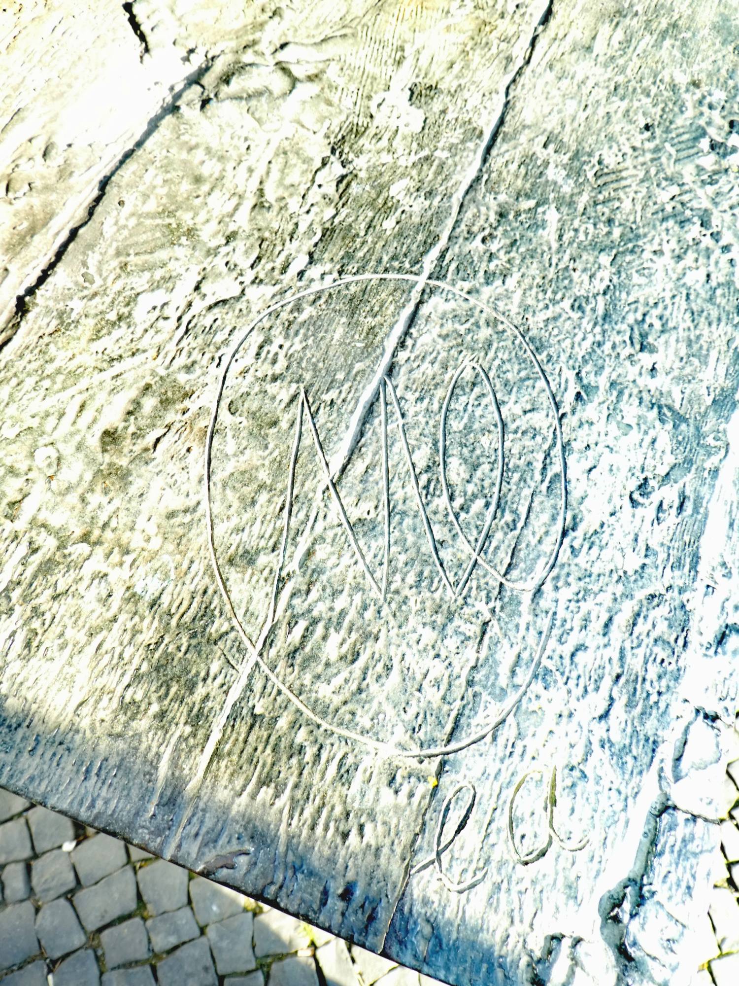Tafel (erhabene Lettern auf einer patinierten Bronzetafel)