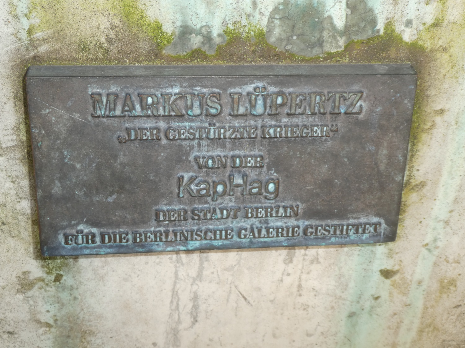 »MARKUS LÜPERTZ / „DER GESTÜRZTE KRIEGER“ / VON DER / KapHag / DER STADT BERLIN / FÜR DIE BERLINISCHE GESTIFTET«