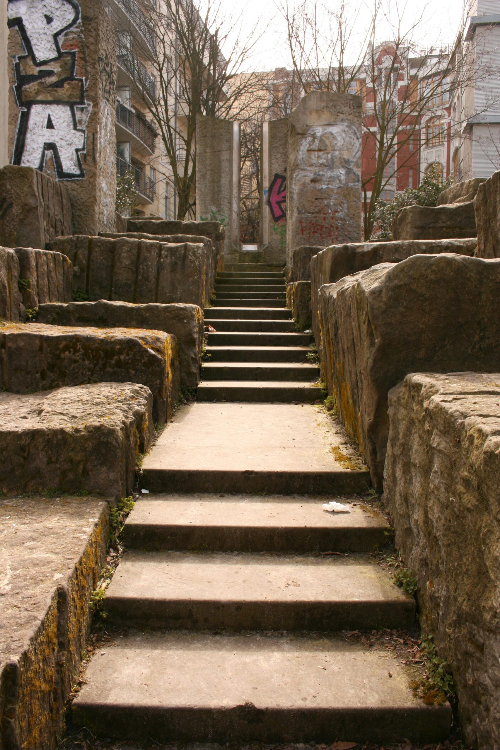 Mehrteilige Anlage mit verschiedenen Objekten, die zusammen als Ensemble eine differenzierte künstliche Natur- und Kunstlandschaft bilden. Künstlerisches Zentrum bildet eine künstliche Felsformation von archaischer Strenge, gefügt aus Stein, bereichert durch polierten Stahl und die Möglichkeit einer indirekten Beleuchtung (Jörg Kuhn, Susanne Kähler).