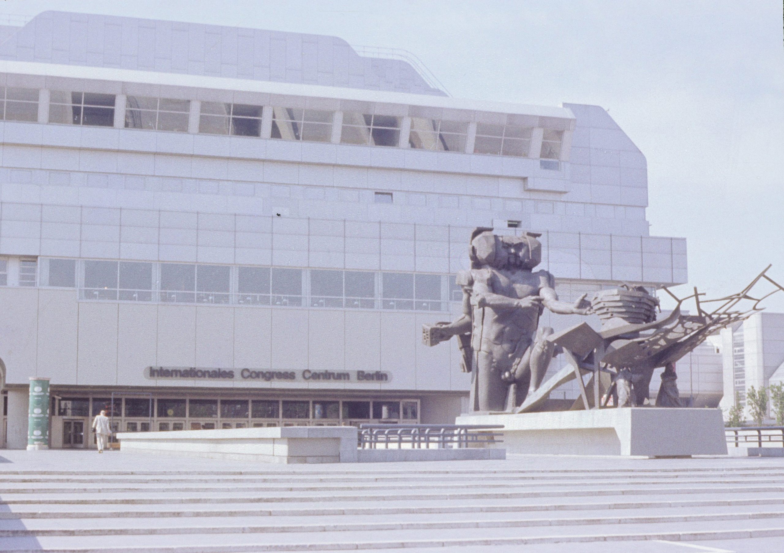 Vergrößerte, auf den speziellen Ort abgestimmte Neufassung einer Skulptur von 1965. Entstanden in der Kunstgießerei Tesconi in Pietrasanta. Datiert auf der Fußsohle der Hauptfigur 29. Mai 1979. Einweihung der Plastik am 13. Juli 1980. Im Anschluss an die Fertigstellung des Internationalen Congress Centrums (ICC) kam es im Zusammenhang der vorgesehenen skulpturalen Vorplatzgestaltung zu Kontroversen, über die Vergabemodalitäten. Die Architekten des Gebäudes (Ralf Schüler und Ursulina Schüler-Witte) versuchten, eine Direktvergabe an das Bildhauer-Ehepaar Matschinsky-Denninghoff durchzusetzen, was an dem Einspruch des Berufsverbandes Bildender Künstler scheiterte, der ein demokratischeres und transparentes Verfahren einforderte. An dem begrenzten Wettbewerb nahmen Matschinsky-Denninghoff, Alfred Hrdlicka, Engelbert Kremser, Joachim Schmettau, Rolf Szymanski, Jean Tinguely und Jean Ipoustéguy teil. Mit 14 Ja-Stimmen, zwei Gegenstimmen und einer Enthaltung wurde Ipoustéguys Entwurf mit der Hoffnung gewählt, einen "Beitrag zum Fortschritt" geschaffen und die "Attraktivität der Stadt" erhöht zu haben, was vor allem mit den internationalen Ruhm des französischen Künstlers verbunden war. Über Ipoustéguys Werk wurde jedoch in der Folgezeit heftig gestritten. Die Kritik richtete sich einerseits gegen die Monumentalität und hieratischen Aufstellung der Plastik entlang der Mittelachse des Gebäudes und war andererseits mit dem Titel und den für die damalige Zeit problematischen inhaltlichen Dimensionen des Werks befasst. Alexander vor Ekbatana wurde im Berlin der späten 70er Jahre als Eroberer und feudale Herrscherfigur gelesen. Es wurde darauf aufmerksam gemacht, dass Alexander der Große die persische Stadt zunächst unterworfen hatte und plündern ließ, bevor er dort eine neue Hauptstadt am Schnittpunkt seines westlichen und östlichen Reichs baute. Statt den generell menschlich-schöpferischen Aspekten, die Ipoustéguy mit der Plastik zum Ausdruck bringen wollte, verlagerte sich deren Sinn auf eine vermeintliche Brutalität der kriegerisch gepanzerten Hauptfigur, unter deren diktatorischem Befehl die kleinfigurigen Bauarbeiter im vorderen Teil der Plastik stünden. Trotz der nachträglich, in Reaktion auf die Kritik, vorgenommene Änderung des Titels in "Der Mensch baut seine Stadt", die von der historischen Lesart der Plastik ablenken sollte, wurde der Kontrast zwischen dem demiurgischen Schöpfertum einer vereinzelten, überlebensgroßen Figur und der "arbeitenden Masse" als nicht mehr zeitgemäß empfunden. Die reparaturbedürftige Plastik und der brüchig gewordene, etwa 70 Tonnen schwere Betonsockel wurden 2005 demontiert. Die Plastik wurde eingelagert. Im April 2019 befand sich die Plastik noch eingelagert (Marc Wellmann).