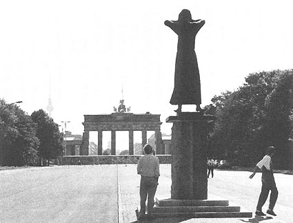 Der Nachguss der Plastik wurde 1989 zum 100. Geburtstag des Bildhauers aufgestellt - ein halbes Jahr vor Öffnung der Berliner Mauer. Die Figur des Rufers entstand 1966/1967 als Auftragswerk für Radio Bremen als Zeichen für Fernkommunikation ohne jegliche politische Bedeutungszuweisung. Der politisch motivierte Nachguß von 1989 wurde von einer privaten Stiftung von Banken sowie dem Axel-Springer-Verlag finanziert. Das Motiv ist abgeleitet von der Gestalt des Stentor aus der Ilias, hier verknüpft mit dem Werk von Petrarca (Susanne Kähler, Marc Wellmann).