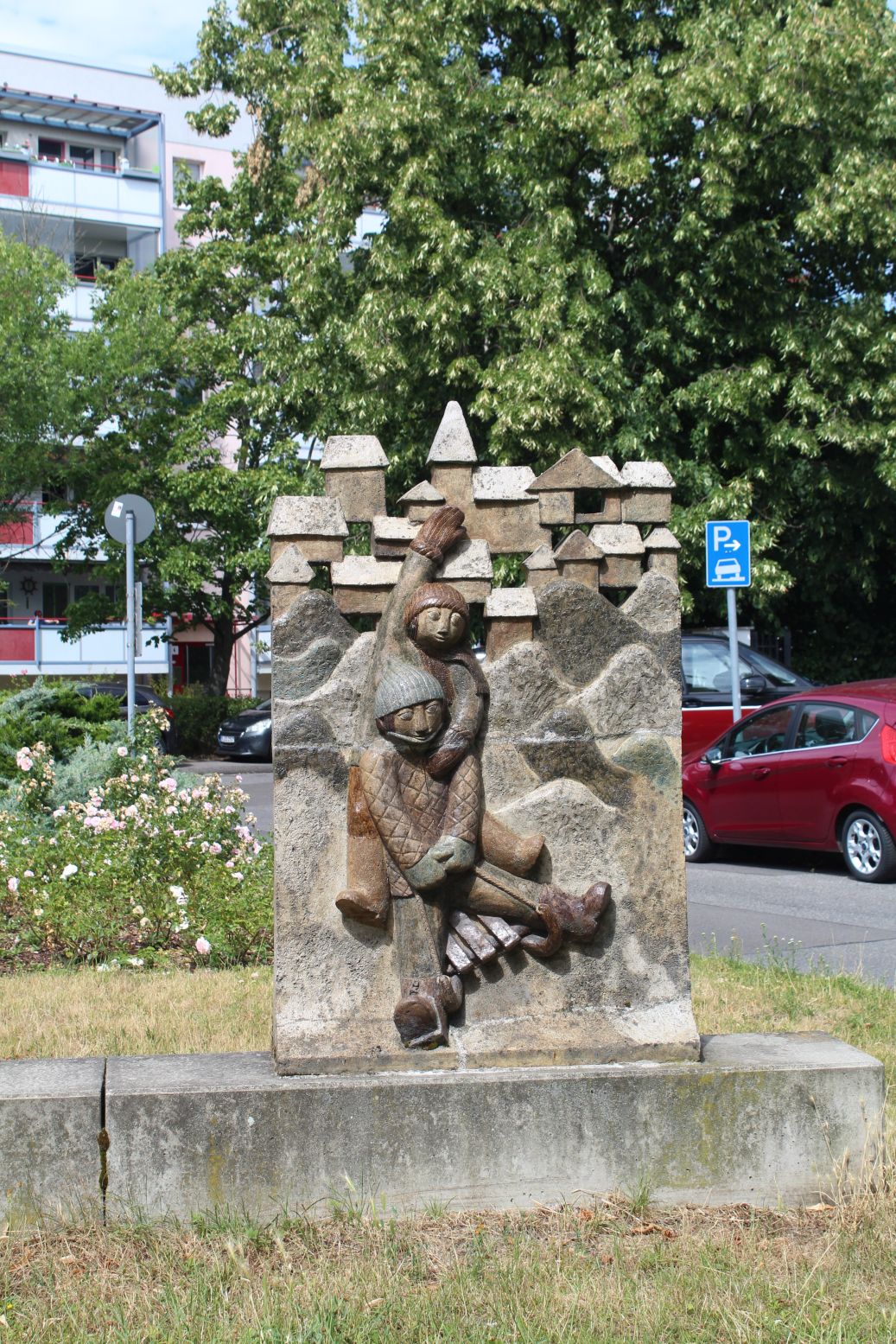 "Die Keramikreliefwände begrenzten und schmückten die Terrasse der Gaststätte "Südspitze". Nach dem Gebäudeabriss 2003 erfolgte 2005 ihre Neuaufstellung auf einem niedrigen Betonsockel nahe dem originalen Standort in Verlängerung der Biesdorfer Promenade." (Kunst in der Großsiedlung, 2008, S. 70)