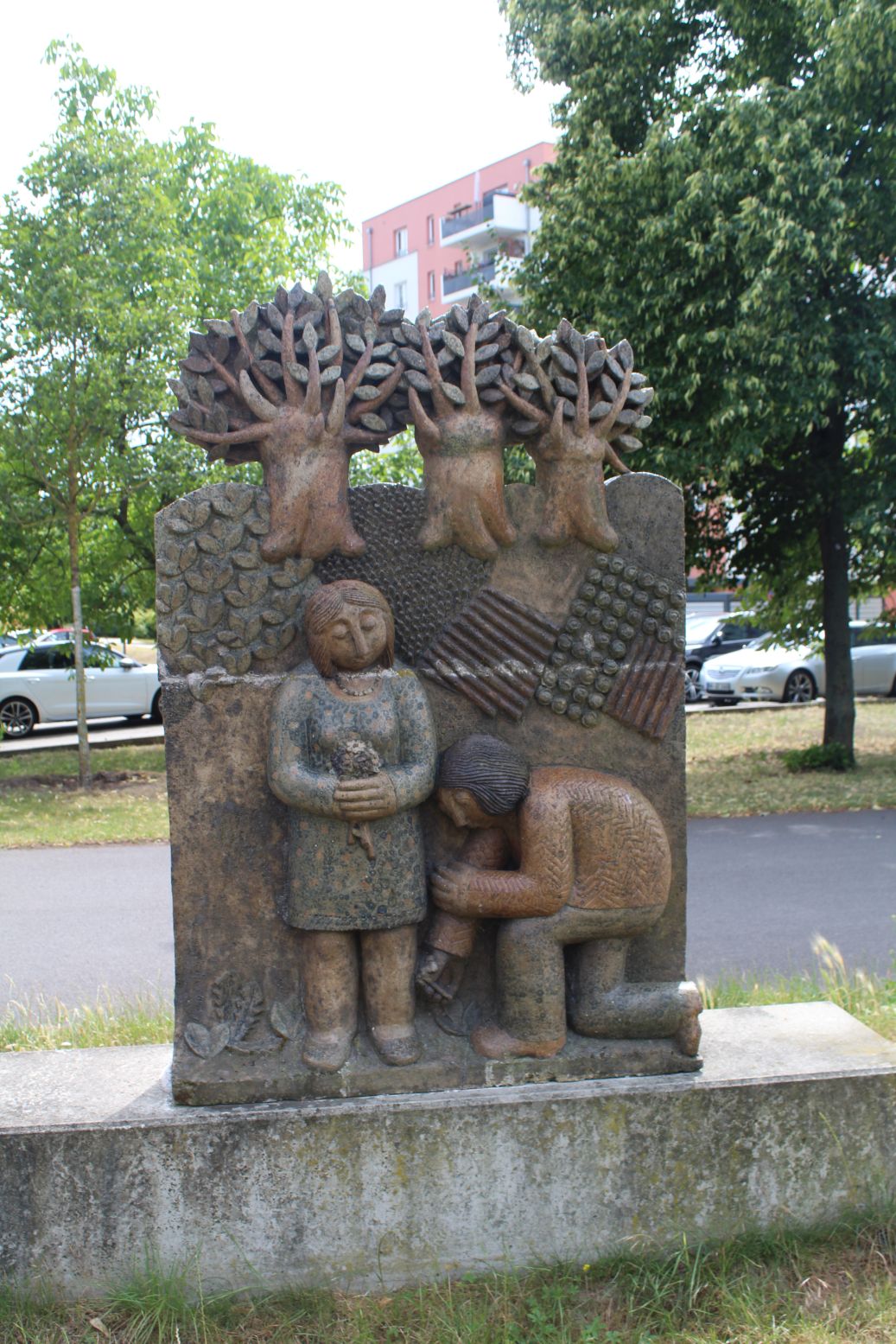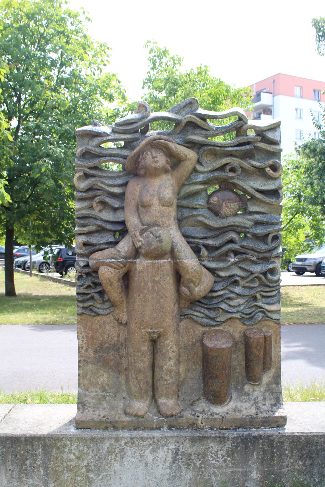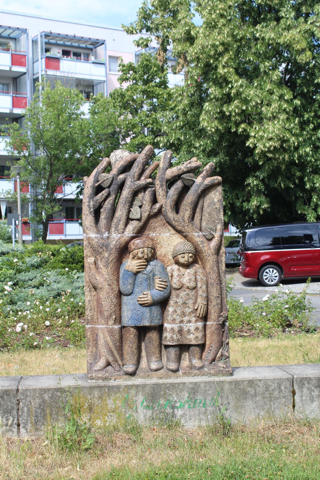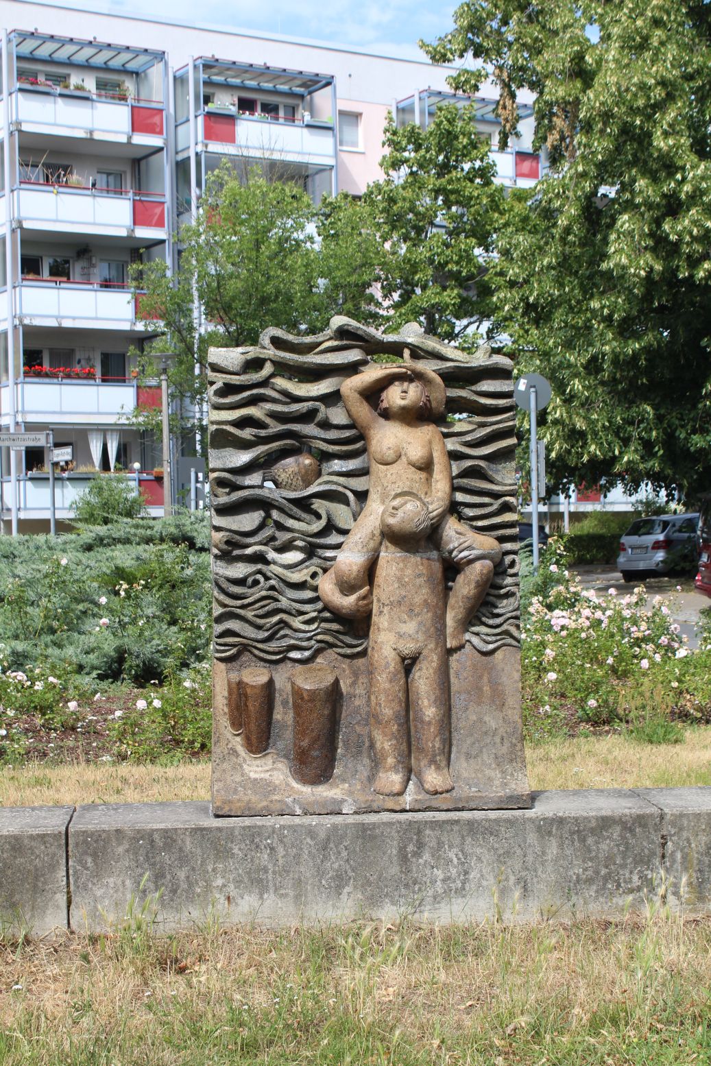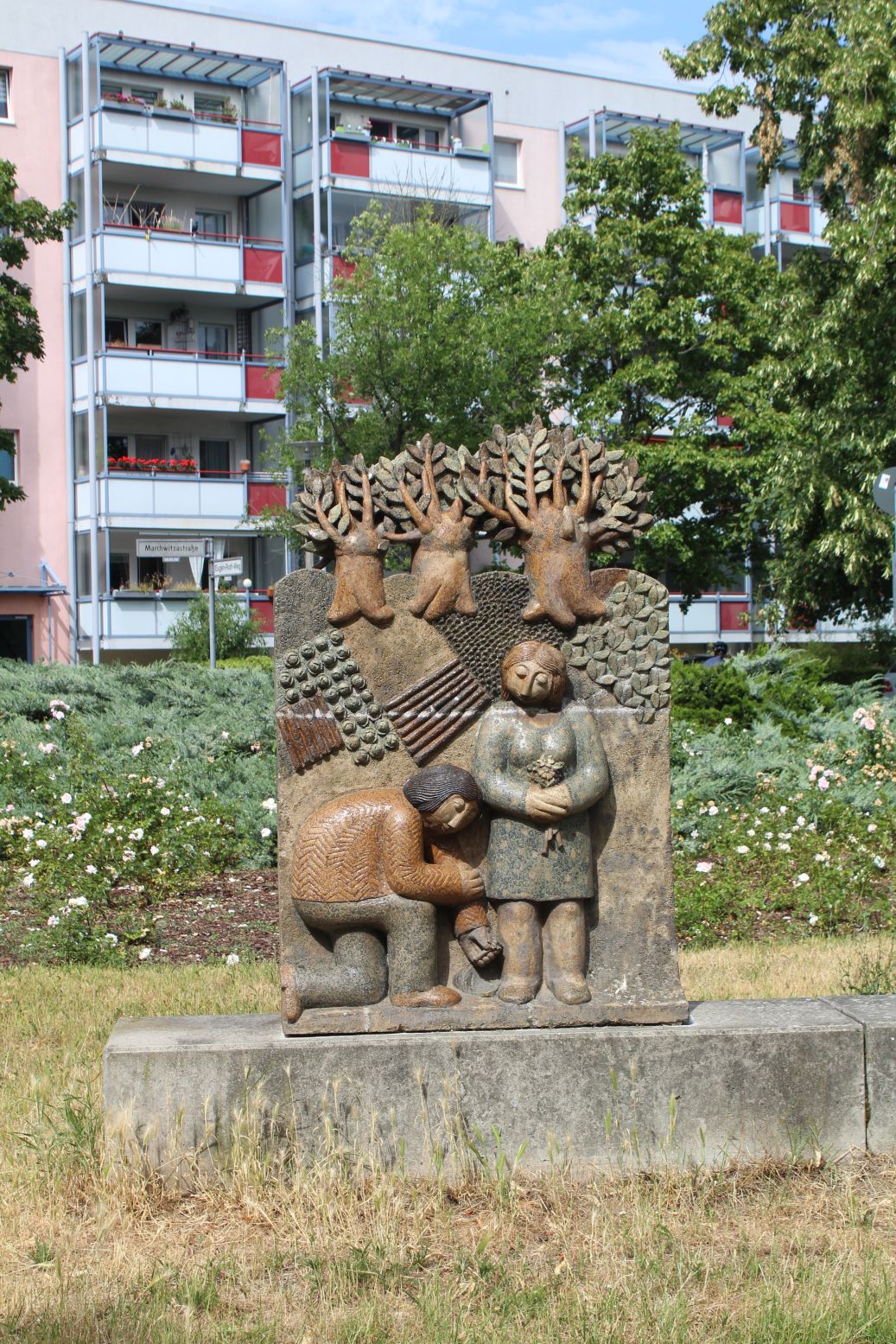 „Vier hochformatige, beidseitig gestaltete Keramikreliefwände zeigen Mann und Frau in Natur und Landschaft bei jahreszeitlichen Aktivitäten: im Frühling beim Pflanzen, im Sommer beim Baden, im Herbst beim Wandern, im Winter beim Rodeln auf dem Schlitten. Die Motive sind sowohl auf der Vorder- wie auch auf der Rückseite der Reliefs dargestellt. Mit ihrer volkstümlichen Bildsprache, den heimatlichen Naturbezügen und den werkstoff Keramik drücken die Reliefs eine Verbundenheit zur Region Berlin-Brandenburg aus.“ (Kunst in der Großsiedlung, 2008, S.70)