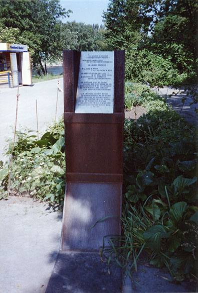 »PER SCIENTIAM AD JUSTITIAM / = DURCH WISSENSCHAFT ZUM RECHT = / UNTER DIESEN GEDANKEN STELLTE / DER ARZT UND SEXUALWISSENSCHAFTLER / DR. MAGNUS HIRSCHFELD / * 14.5.1868 IN KOLBERG / + 14.5.1935 IM EXIL IN NIZZA / DIE ARBEIT DES VON IHM AM 6.7.1919 IN DER NÄHE DIESER STELLE / IN DEN ZELTEN 9A-10 / GEGRÜNDETEN „INSTITUTS FÜR SEXUALWISSENSCHAFT“ VOM PREUSSISCHEN STAAT ALS STIFTUNG ANERKANNT / WURDE DIESES GEBÄUDE VON DEN NATIONALSOZIALISTEN / IM MAI 1933 GEPLÜNDERT UND ZWECKENTFREMDET / SOWIE SEINE ÜBER 12000 SCHRIFTEN ÖFFENTLICH VERBRANNT DAS IM II. WELTKRIEG ZERSTÖRTE INSTITUT FÜR SEXAULWISSENSCHAFT / WAR DIE WELTWEIT ERSTE EINRICHTUNG / DIE SEXUALWISSENSCHAFTLICHE FORSCHUNG UND LEHRE VEREINTE / EIN ORT DER MEDIZINISCHEN BETREUNG UND ZUFLUCHTSORT FÜR ALLE / DIE WEGEN IHRER SEXUALITÄT GEÄCHTET WAREN. / 6. JULI 1994«