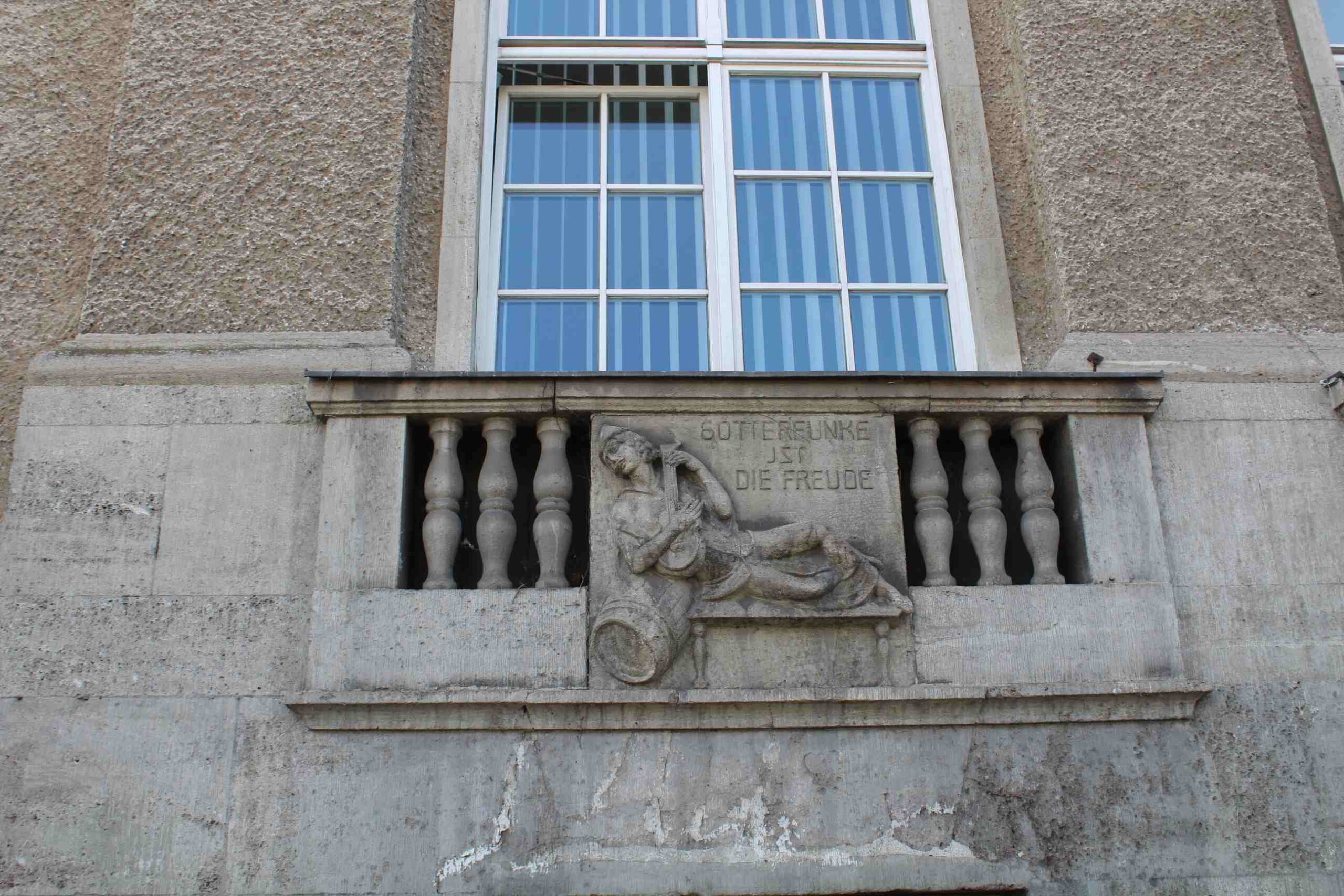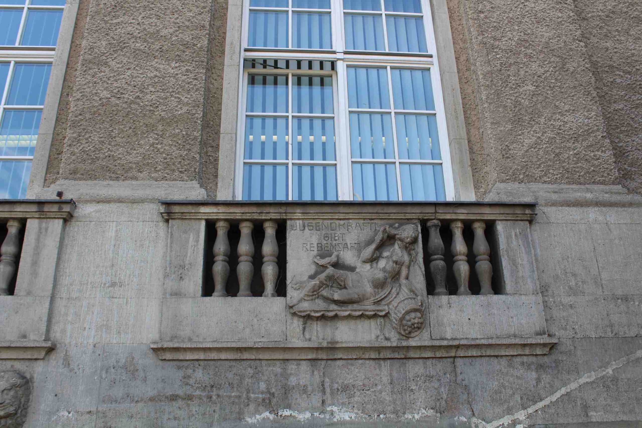 Die Brüstungsfelder unterhalb der Fenster im ersten Geschoss des ehemaligen Lyzeums Karlshorst sind mit drei von Balustern flankierten Reliefs verziert. Diese zeigen Szenen mit fröhlichen weiblichen und männlichen Zechern und tragen Sprüche, die auf den hier in den 1920er Jahren untergebrachten Ratskeller verweisen: „Götterfunke ist die Freude“ und „Jugendkraft gibt Rebensaft“. Der ehemalige Eingang ist seitlich gerahmt von zwei Reliefbändern mit Köpfen, Ornamenten und Puttengruppen.