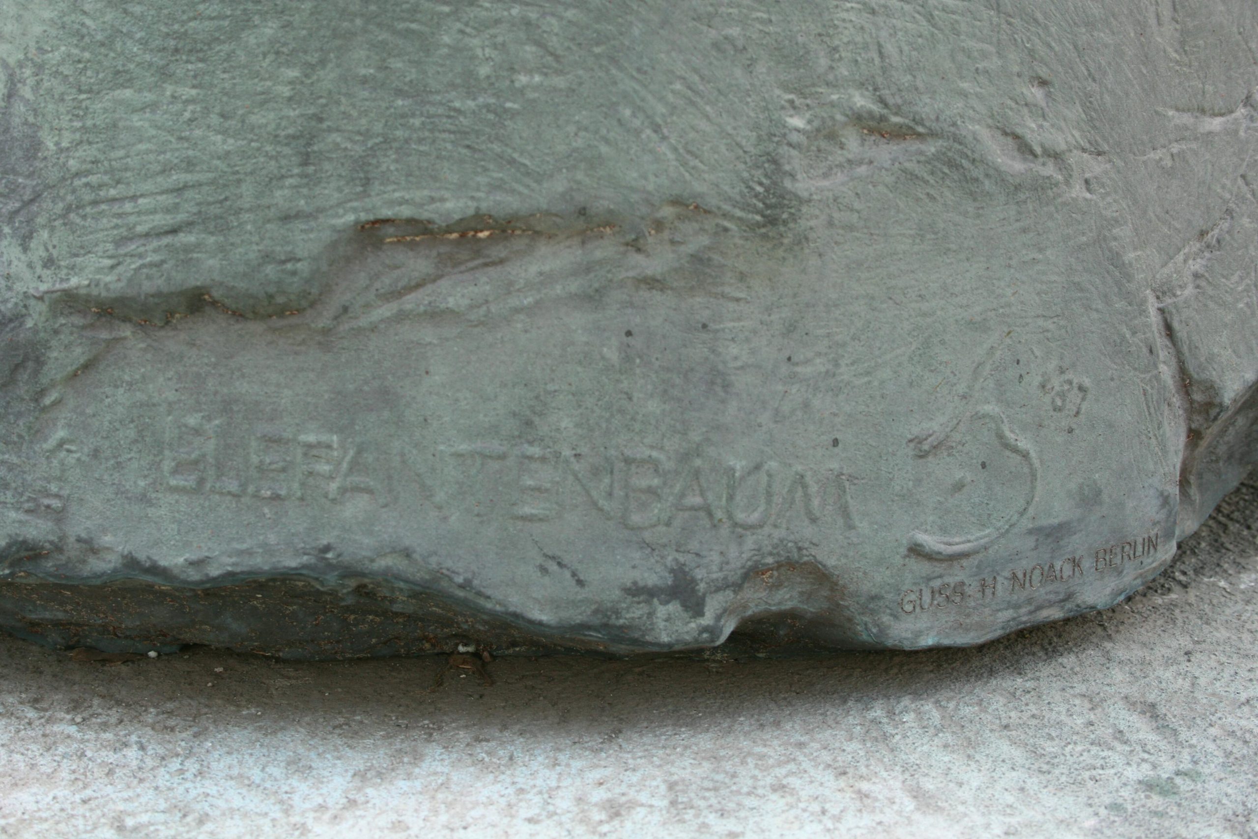 Scharfenbergs Plastik steht auf der linken Seite des Hauptweges auf der Rasenfläche und gehört aufgrund dieser Position zu denjenigen Skulpturen, die das Begehen des Skulpturengartens einleiten. Die weitgehend abstrakte Plastik besteht neben seiner Größe aus mehreren Elementen, die die Bezeichnung erklären. Der pfeilerartige untere Bereich erinnert sowohl an einen Baumstamm als auch an ein Elefantenbein. Die Krone (oder der Kopf) ist mit Formen bestückt, die entweder als Rüsselansatz und Ohren oder als Ast und Blätter zu deuten sind. Insgesamt handelt es sich um ein monumentales in organischen Formen gestaltetes Objekt (Jörg Kuhn, Susanne Kähler).