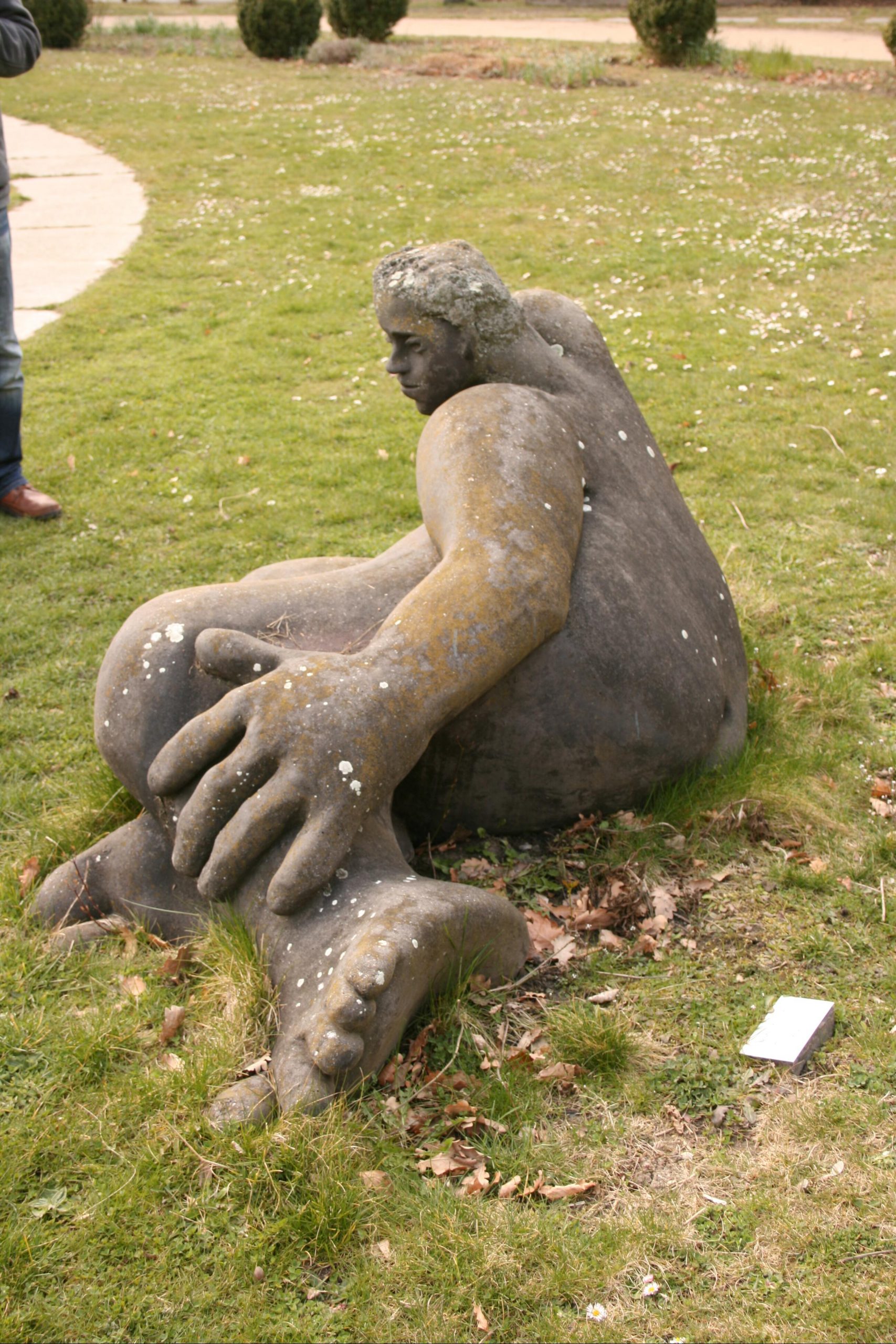 Ursprünglich Teil des senatsgeförderten Skulpturengartens auf dem Messegelände am Funkturm, der 1981 eingerichtet und nach 1990 aufgelöst wurde. Die Skulptur mit dem Titel „Emmi eins“ von Silvia Kluge wurde 1999 als Leihgabe des Senators für Bauen, Wohnen, Verkehr im Park des Auguste-Viktoria-Krankenhauses Schöneberg aufgestellt. Das Konzept zu einem Skulpturengarten auf dem Gelände des Auguste-Viktoria-Krankenhauses wurde bereits Ende der 1980er Jahre entwickelt und geht u. a. auf die Initiative des dort tätigen Chefarztes Professor Dr. med. Manfred L’age zurück. Maßgebliche Gedanken waren die Fragen um Trost und Genesungshilfe für Kranke und Besucher. Zeitgenössische Kunst sollte Denkanstöße während der Grenzerfahrung einer Krankheit geben. Beteilig an der Ausarbeitung waren neben L’age die Kunsthistoriker Jörn Merkert und und Eberhard Roters (Berlinische Galerie) sowie der Architekt Thomas Baumann und der Gartenarchitekt Elmar Knippschild. Finanzielle Förderung erfuhr das Projekt ab 1990 vom Senator für Bauen, Wohnen und Verkehr als „baubegleitendes gestrecktes Verfahren“. Im Mai 1999 wurde der Skulpturengarten des Auguste-Viktoria-Krankenhauses eröffnet, damals stellten hier 21 Künstler aus (einige Plastiken befanden und befinden sich zusätzlich im Innenraum). Die Ausstellung wurde 2000 erweitert und hat sich seitdem vielfach verändert, einige der ursprünglichen Objekte stehen heute nicht mehr vor Ort, zahlreiche andere, hauptsächlich Leihgaben der Berlinischen Galerie und Leihgaben und Schenkungen einzelner Künstler sind hinzugekommen (Jörg Kuhn, Susanne Kähler).